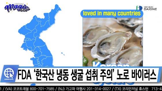 연방 식품의약국FDA이 한국산 냉동 생굴 섭취에 대해 경고했습니다.