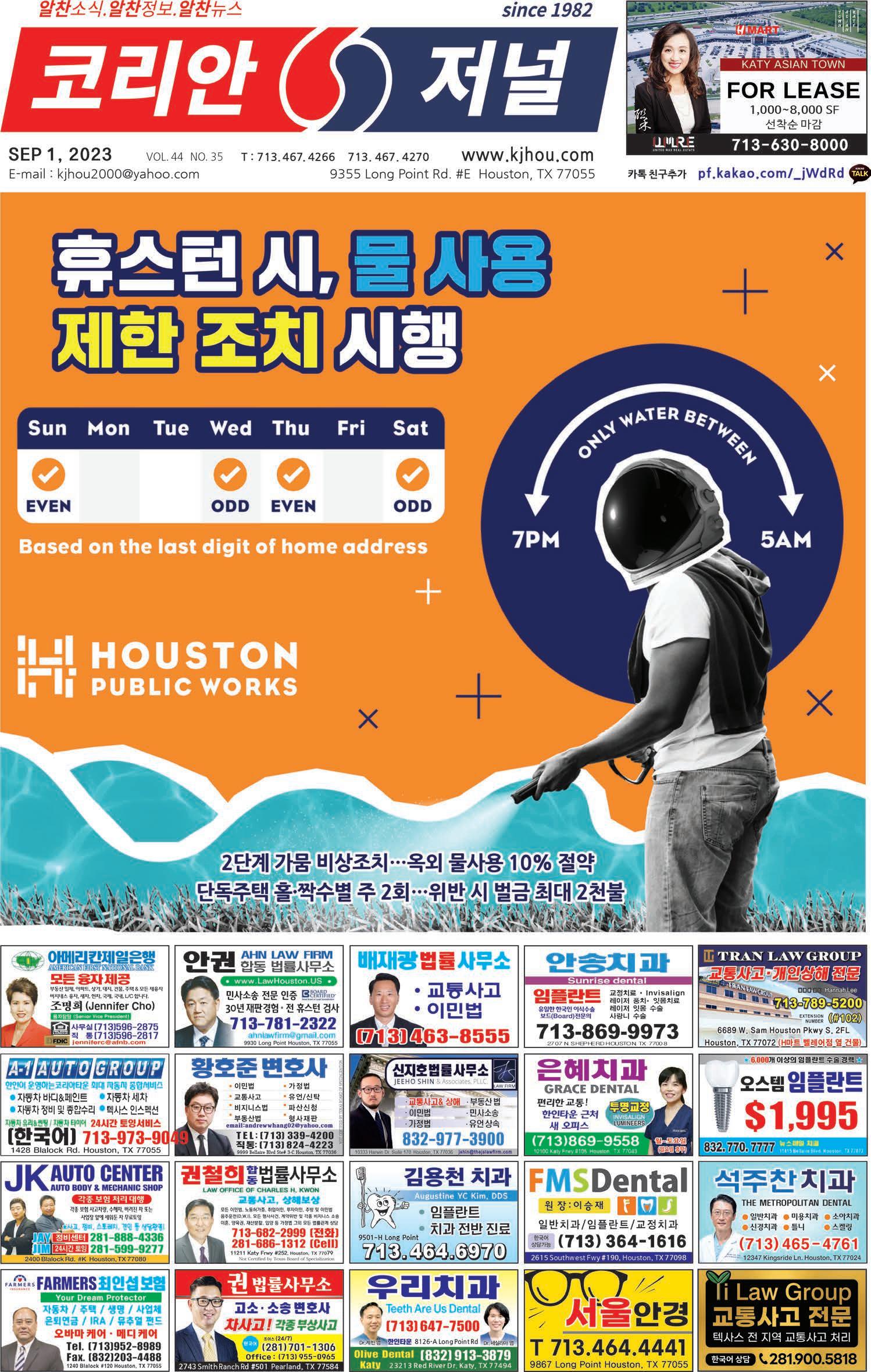 2023년 9월 1일 코리안저널-USKN 제휴. 헤드라인 뉴스