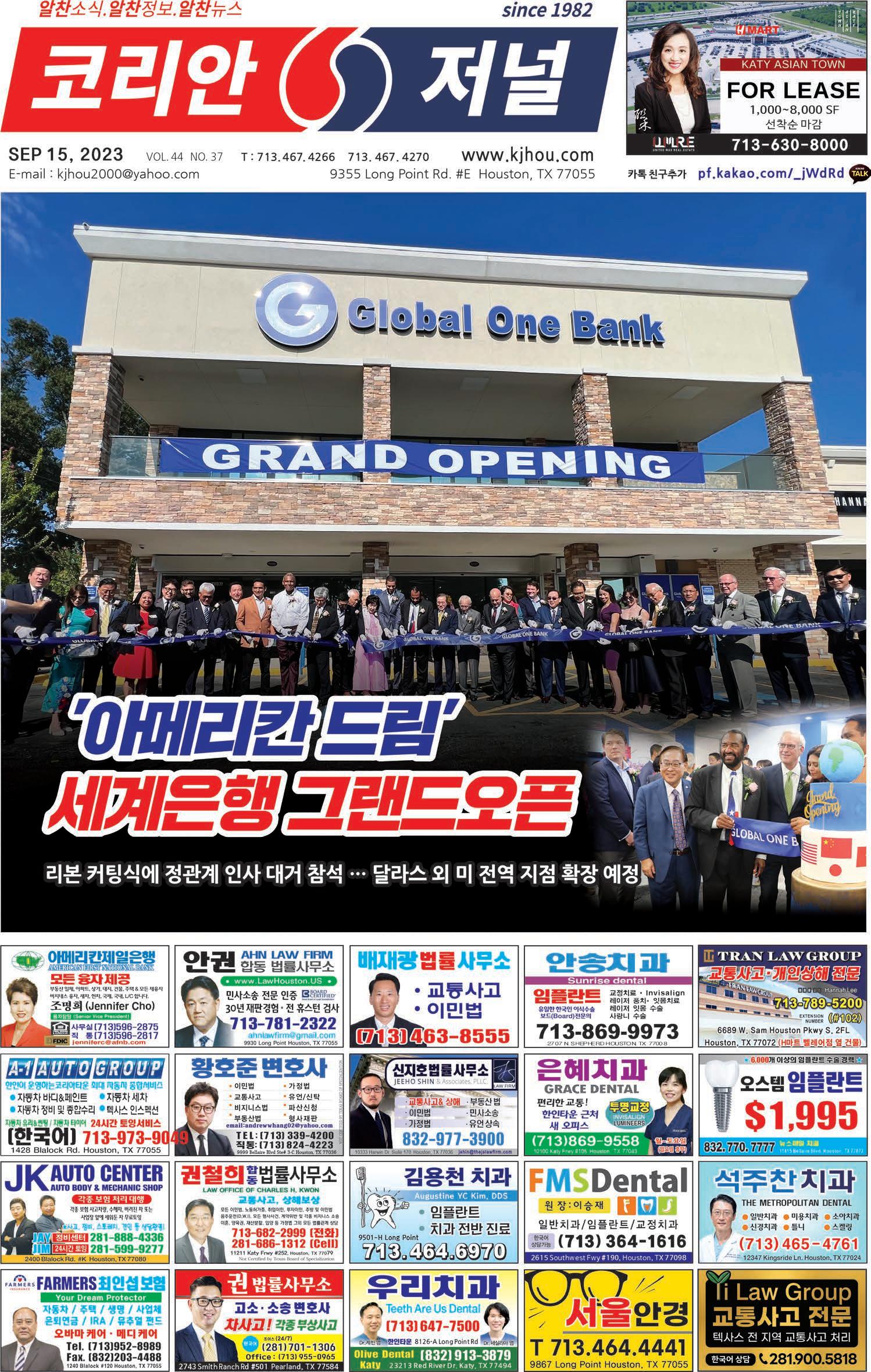 2023년 9월 15일 코리안저널-USKN 제휴. 헤드라인 뉴스