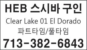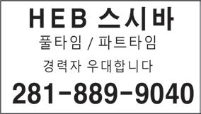 -HEB 스시바 구인, 풀/파트타임, Hwy6&Clay -------------------------(281)889-9040