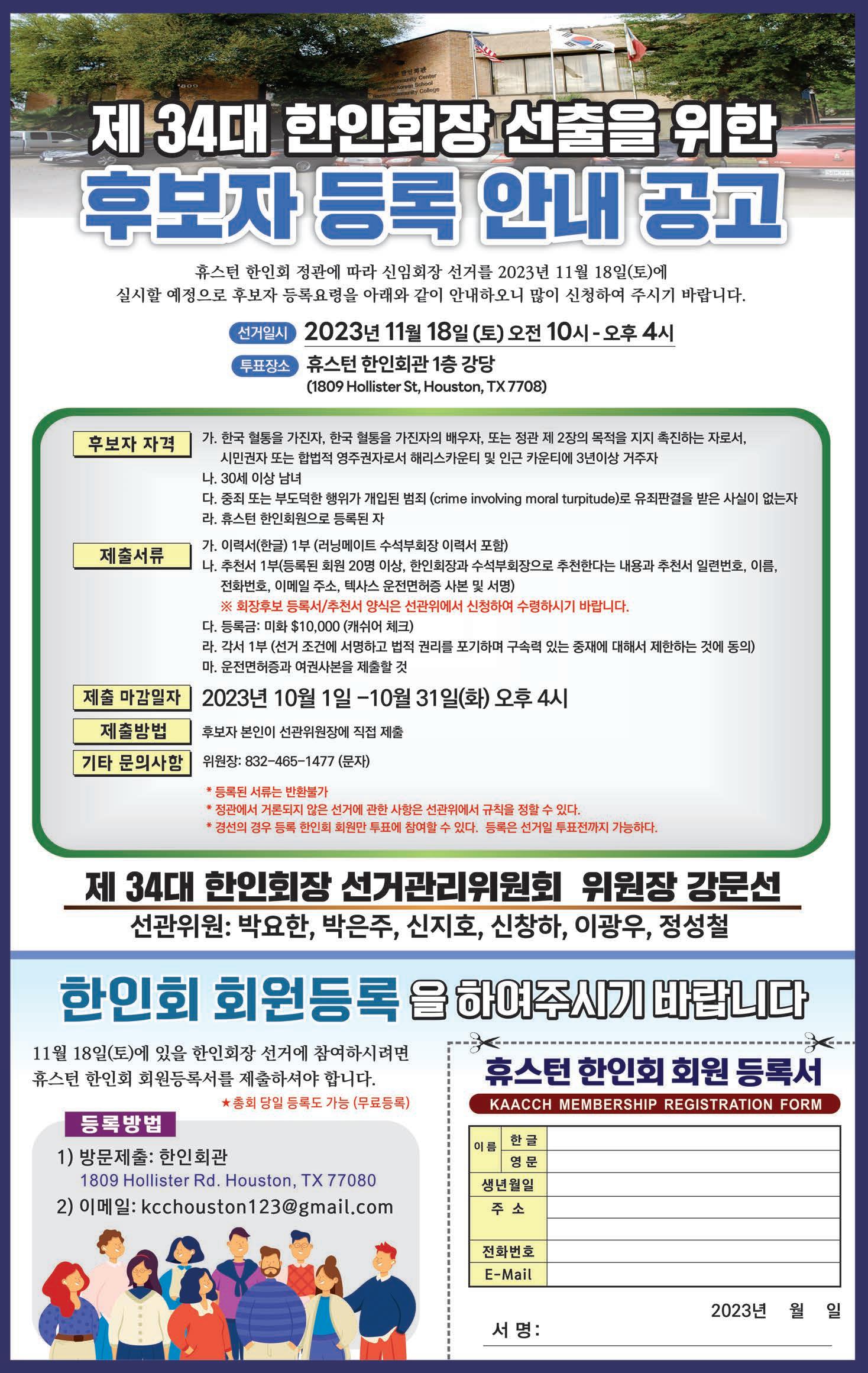 휴스턴 한인회(윤건치) ----- (713)463-7770