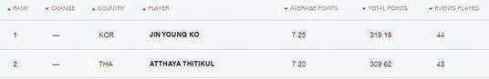 독 6위에 오르면서 세계 랭킹 1 위 경쟁이 ‘초박빙’ 양상이 됐다. 고진영은 최근 손목 부상으 로 고전하는 반면 티띠꾼은 5 개 대회에서 우승 한 번을 포함 해 모두 10위 이내 성적을 내는 상승세다.