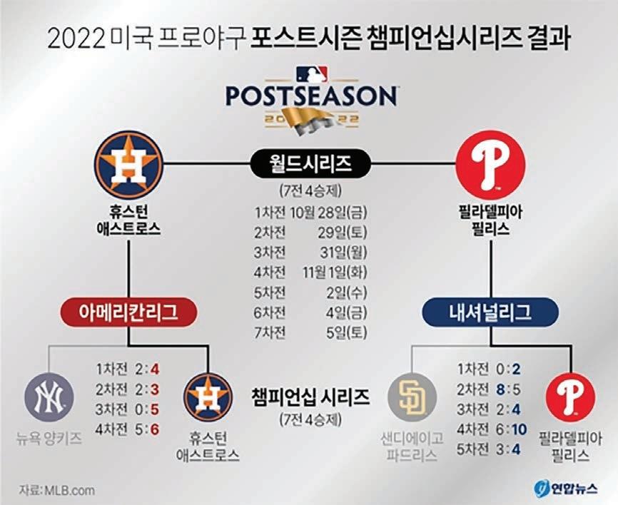 OCT 28, 2022 21 <연합뉴스> 역사적인 휴스턴-필라델피아 118회 MLB 월드시리즈 관전 포인트