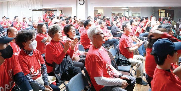 그 열기가 통했는지 후반 전 이강인 선수가 투입되자마자 조 규성의 헤딩 멀티골이 연속 터지면 서 한인회관은 그야말로 환호성과 박수갈채가 터져 나왔다. 보고 또 봐도 두 팔이 절로 올라가는 짜릿 한 순간이었다. 그러나 동점은 오 래가지 않았고, 결국 가나에 2:3 으로 석패했다. 아쉽고 실망스러 운 경기 결과였고, 악조건에서 치 러질 3차전 포루투갈전에서의 투 혼을 기대해야 했다. 이날 조식은 카타르 월드컵에 맞춰 미국과 전세 계에서 다양한 이벤트를 선보이고 있는 맥도널드가 후원했다. 분명한 것은 경기 결과에 상관없이 북소리