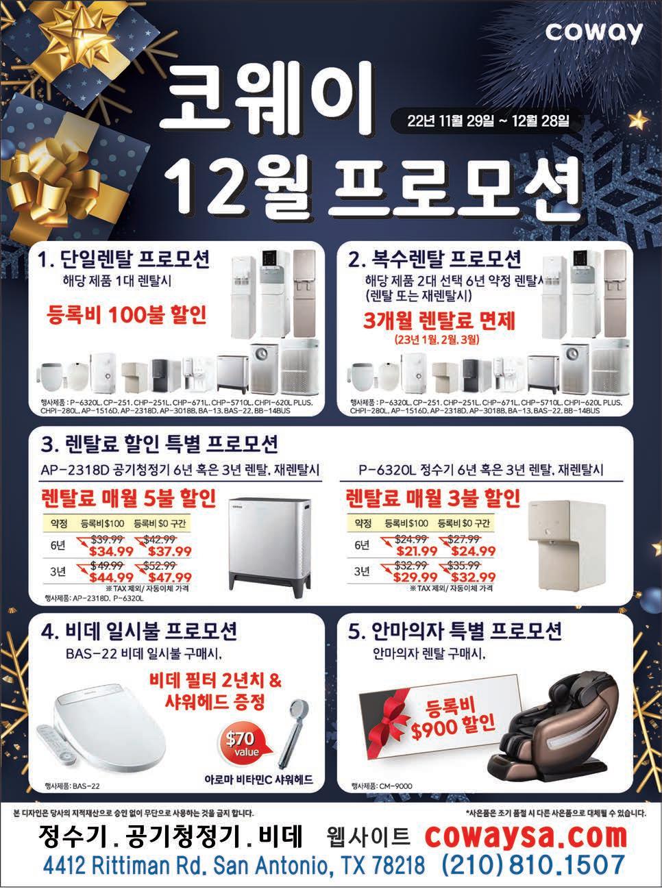 어들었지만 3월까지는 아직 멀었 다”면서, 독감 백신을 맞을 시간이 아직 남아있다고 했다. 예방 접종 을 빨리 받으면 어린이, 가족, 면 역 체계가 약화된 사람들이 연휴 동안 병에 걸리지 않도록 더욱 보 호할 수 있다. 미 보건당국은 상황 악화를 막기 위해 마스크 착용, 거리두기, 개인 위생 등 기본 방역수칙을 지키는 것은 물론 개량된 코로나 백신과 독감 백신을 모두 접종할 것을 강 력하게 권고하고 있다.