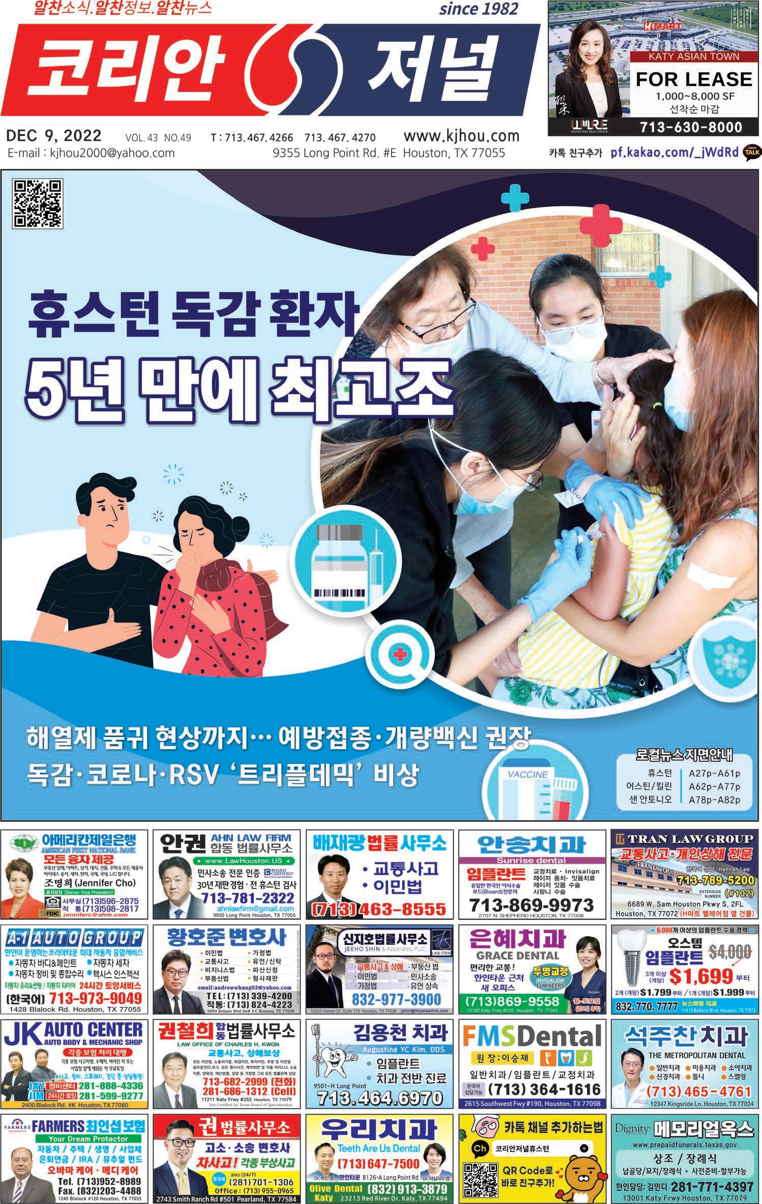 DEC 9, 2022 A 27 코리안저널 전자신문 서비스 해열제 품귀 현상까지…예방접종·개량백신 권장