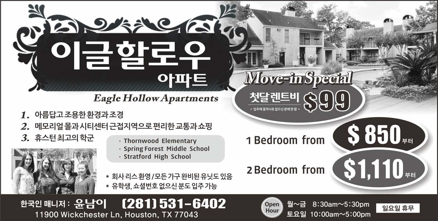-방세놓음, W.Little york & N.Eldridge, 여자분환영 -------------------------(713)979-6785 -룸메이트 구함, 게스너/롱포인트 -------------------------(713)854-6777