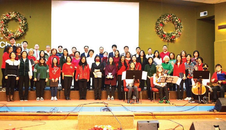 권사의 찬양 율동은 아기 예수님의 탄생 하 심을 모든 세대들이 함께 모여 기쁘 고 행복하게 환호하면서 축하하는 시간이 되었다. 성가대의 칸타타 ‘ 사랑으로(Love made a Way)’ 라는 주제로 성가대원들과 이혜윤 지휘 자의 헌신적이고, 열정적인 지도로 ‘기쁘다 구주 오셨네, 주를 맞으러, 산 위에 올라가서’ 등 9곡을 연주했 다. 또 곡 중 솔로 김용혁 간사, 손대 륜 목사, 황진영 사모, Piano 안혜경, Keyboard 이진, Drum 임준섭,
