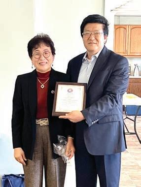 원들의 노고에 감사하며 선물을 증정했고, 조시호 전 이사장도 한 인동포사회와 동창회 활동에 기 여가 큰 탁순덕 이사장에게 선물 을 증정했다.