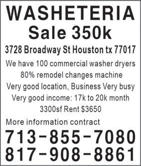 많은 한식 주방장이 일자리를 찾습니다. -------------------------(254)245-5257 -지압사 구함 -------------------------(267)333-4536 -다양한 사이즈 토끼 분양, 한인교회 옆 Clay 지역 -------------------------(832)800-5807 -파사디나 햄버거 가게 캐셔 하실분 -------------------------(713)834-5430 -구혼 여자(53세) 비지니스오너 -------------------------(346)289-6943 -파트타임