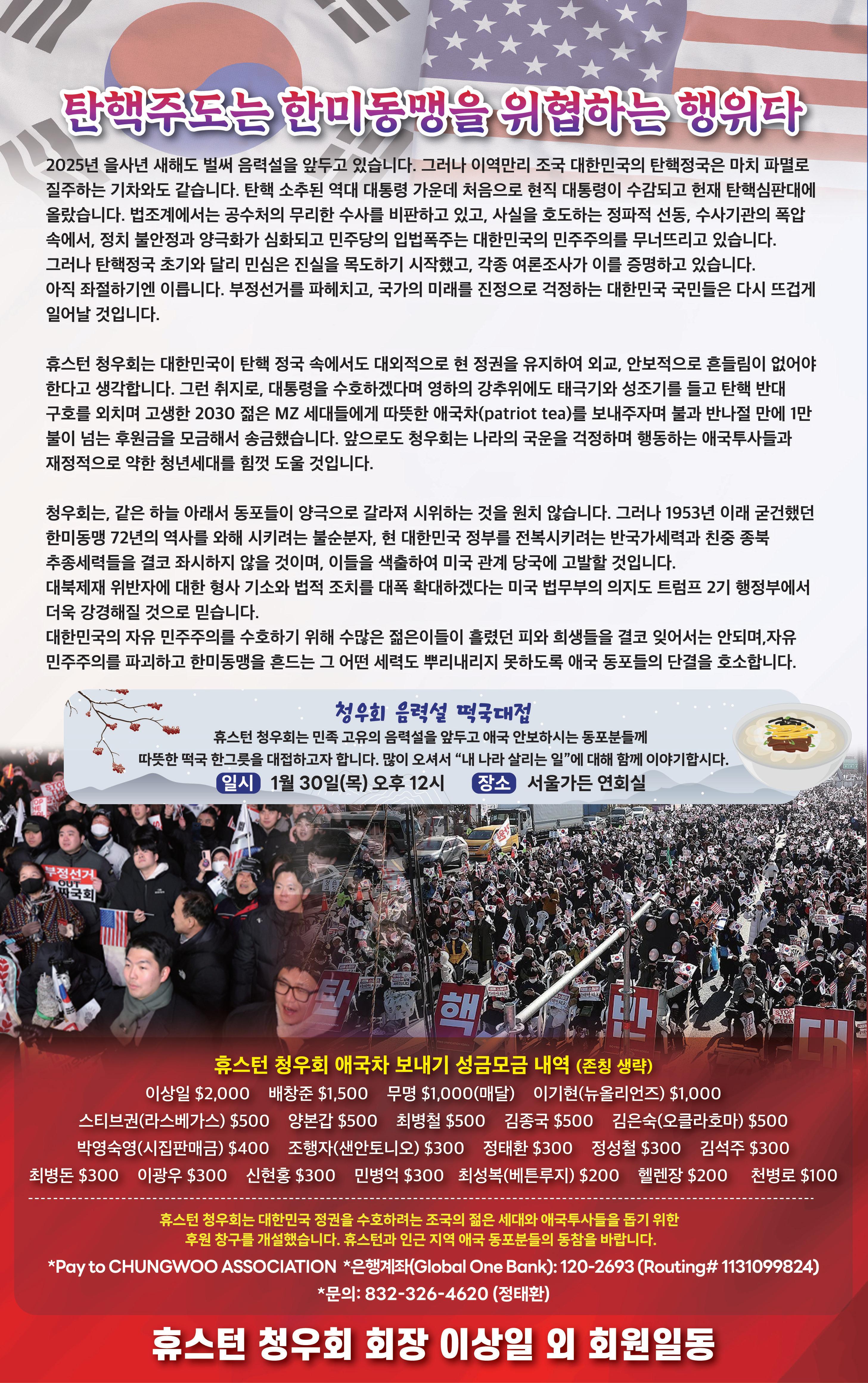 설날(1월 19일)을 맞아 휴스턴 한인회가 1 월 15일 토요일 한인타운에 위치한 트리니 멘