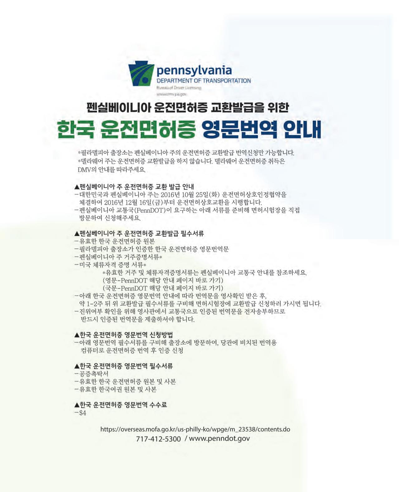 CONSULAR OFFICE OF THE REPUBLIC OF KOREA 주필라델피아출장소장 정대섭 Daesup Chung (월~금 오전 9:00-12:00, 오후 1:00-5:00) 사건사고 신고: +1-267-670-2648/ kco_ph@mofa.go.kr 2 Penn Center, 1500 John F. Kennedy Boulevard, Suite 1830, Philadelphia, PA 19102