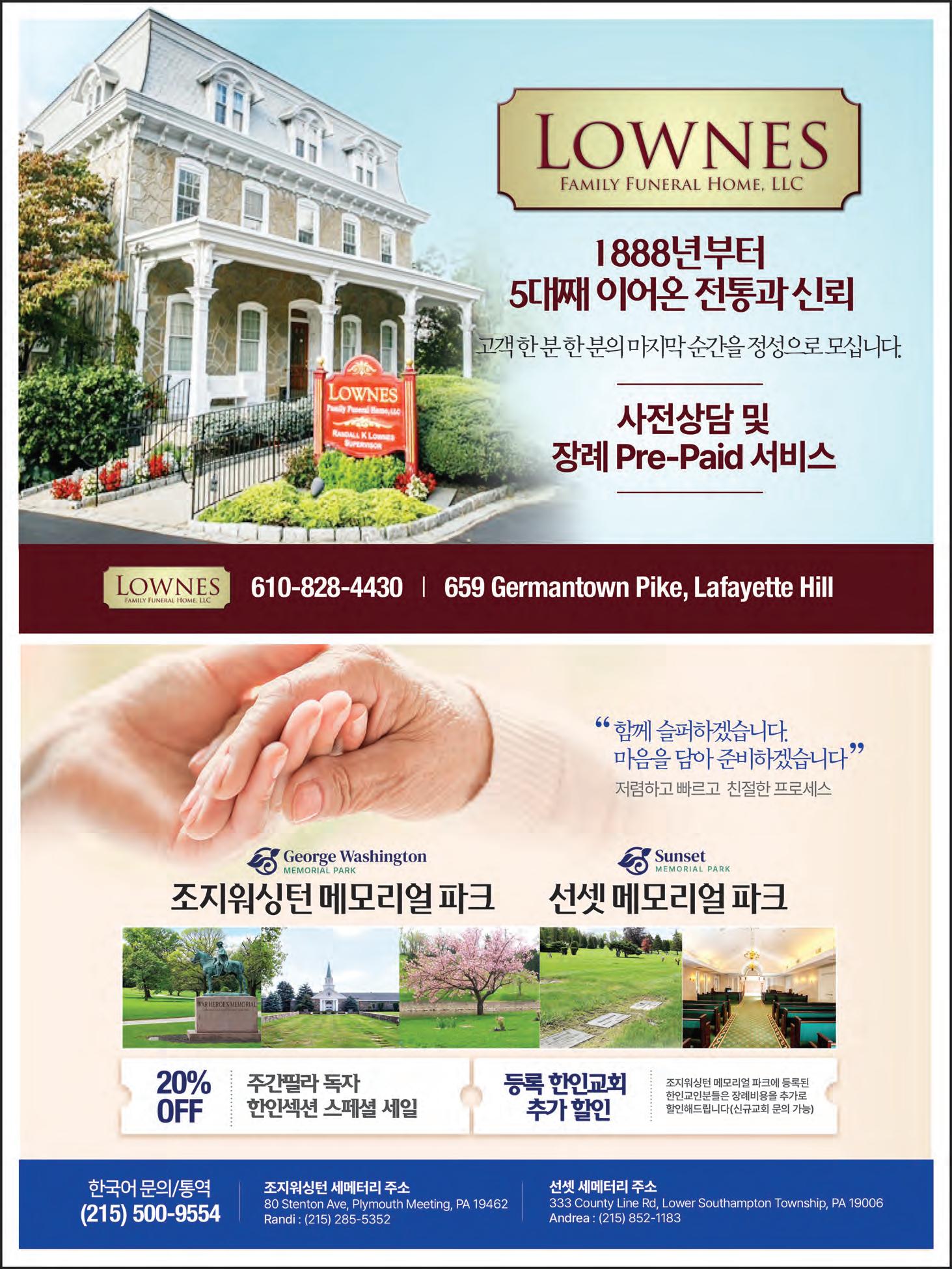 마무리하며 장례를 마친 후에 해야 할 일들은 너무 많 고, 감정적으로도 지쳐 있는 상황에서 혼 자 감당하기 어렵습니다. 이럴 때는 경험 이 풍부한 장례 전문가의 조언과 도움이 큰 힘이 됩니다. 필라델피아에 위치한 김 기호•박성남