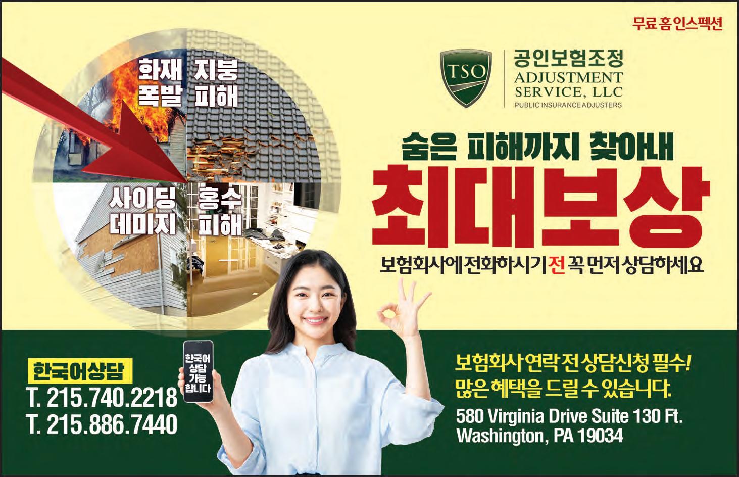 1997년부터 필라델피아와 뉴저지 일대에서 공인보 험조정사 서비스를 제공해온 TSO는 28년 동안 지 역 주민들의 ‘피해 복구 파트너’로 자리해왔다. 보험 청구는대부분의사람들이가장어려워하는과정으 로, 사고 원인 입증부터 서류 준비, 보험사와의 협의 까지 어느 하나 쉬운 단계가 없다. 특히 올겨울처럼 갑작스러운한파가찾아오면파이프동결과누수,지 붕 파손 같은 계절성 피해가 급증하면서 보상 분쟁 도 함께 늘어난다. 빠른 복구와 정당한 보상을 위해