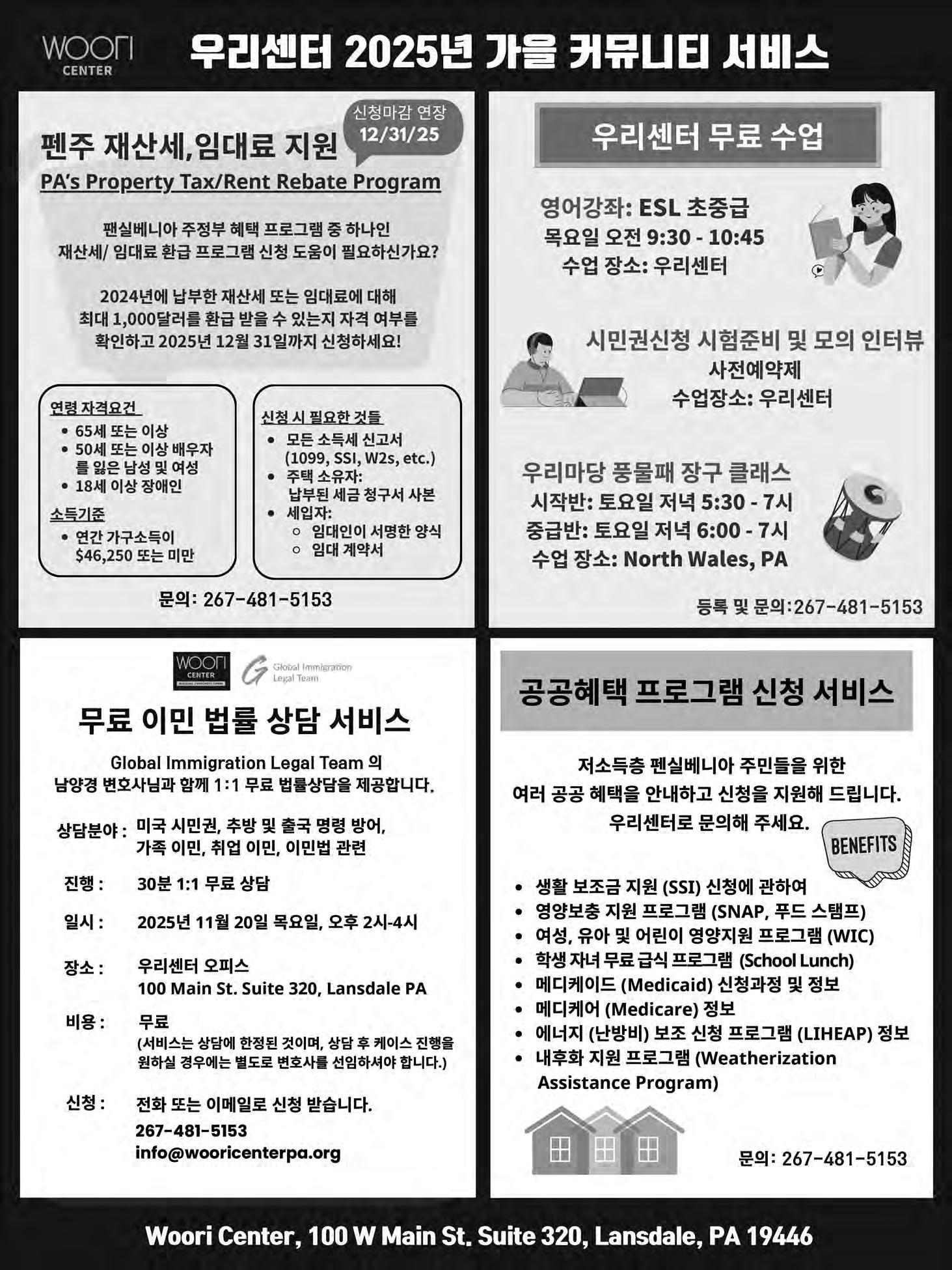 โ ์ฃผ์ ํ๋: ์ ๊ธฐ ์ฐ์ต๊ณผ ์ง์ญ ๊ณต์ฐ, KCCF ์ฃผ ์ต ํ์ฌ ๋ฐ ๊ตญ์ ๋ฌธํ๊ต๋ฅ ๋ฌด๋ ์ฐธ์ฌ ๋ฑ์ ๋ค์ํ ๊ธฐํ๋ฅผ ์ ๊ณตํฉ๋๋ค โ ๋ฌธ์: ์ ํ (267) 310-9207๋ฌธ์ ์๋น์ค ๋๋ ์ด๋ฉ์ผ contact@koreancultureusa.org ๋ก ์ฐ๋ฝ ์ฃผ์๋ฉด ์ ์ฒญ๋งํฌ๋ฅผ ๋ณด๋ด๋๋ฆฝ๋๋ค -KCCF ๋ฏธ์ฃผํ๊ตญ๋ฌธํ์ฌ๋จ[ ์์์ฅ๋ก๊ตํ