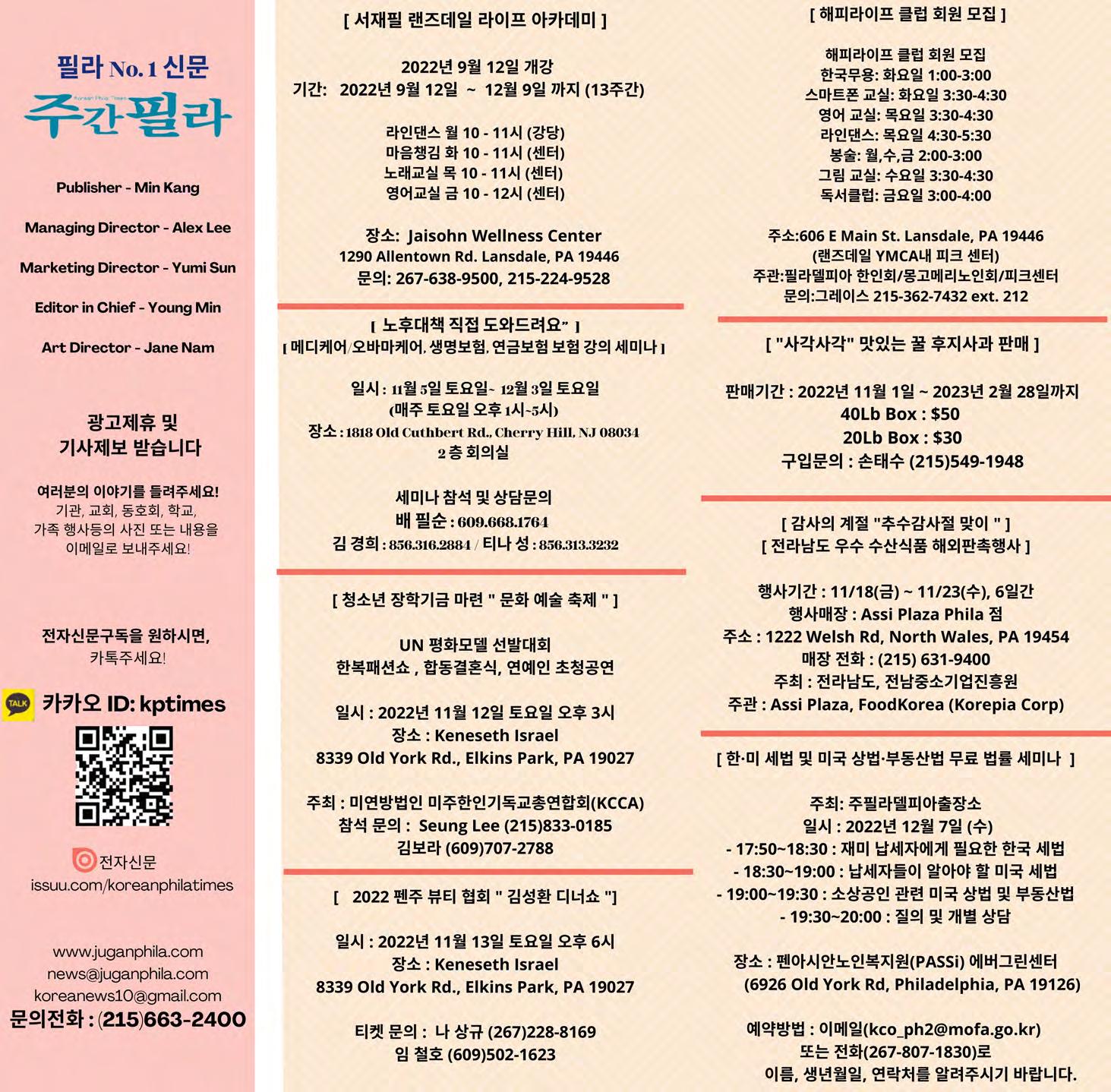 ์ฃผ๊ฐํ๋ผ NOV 11.2022-NOV 17.2022 133www.juganphila.com ํ๊ตญ์ ์ง๊ธ