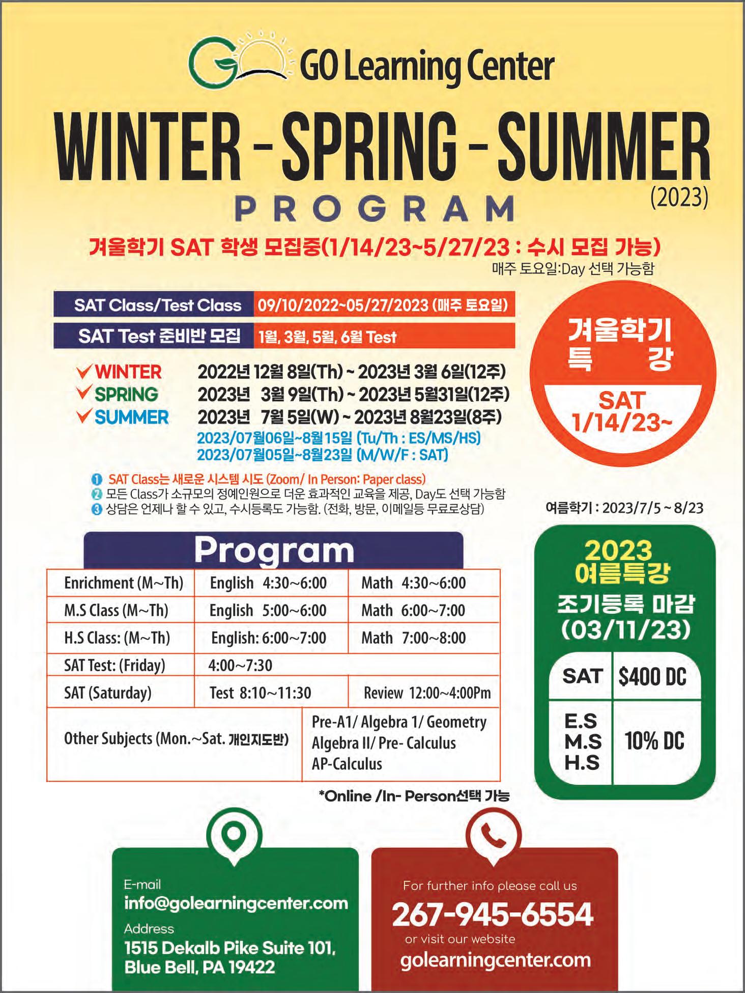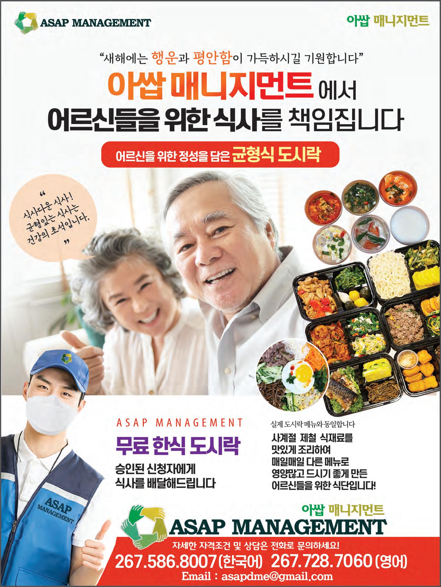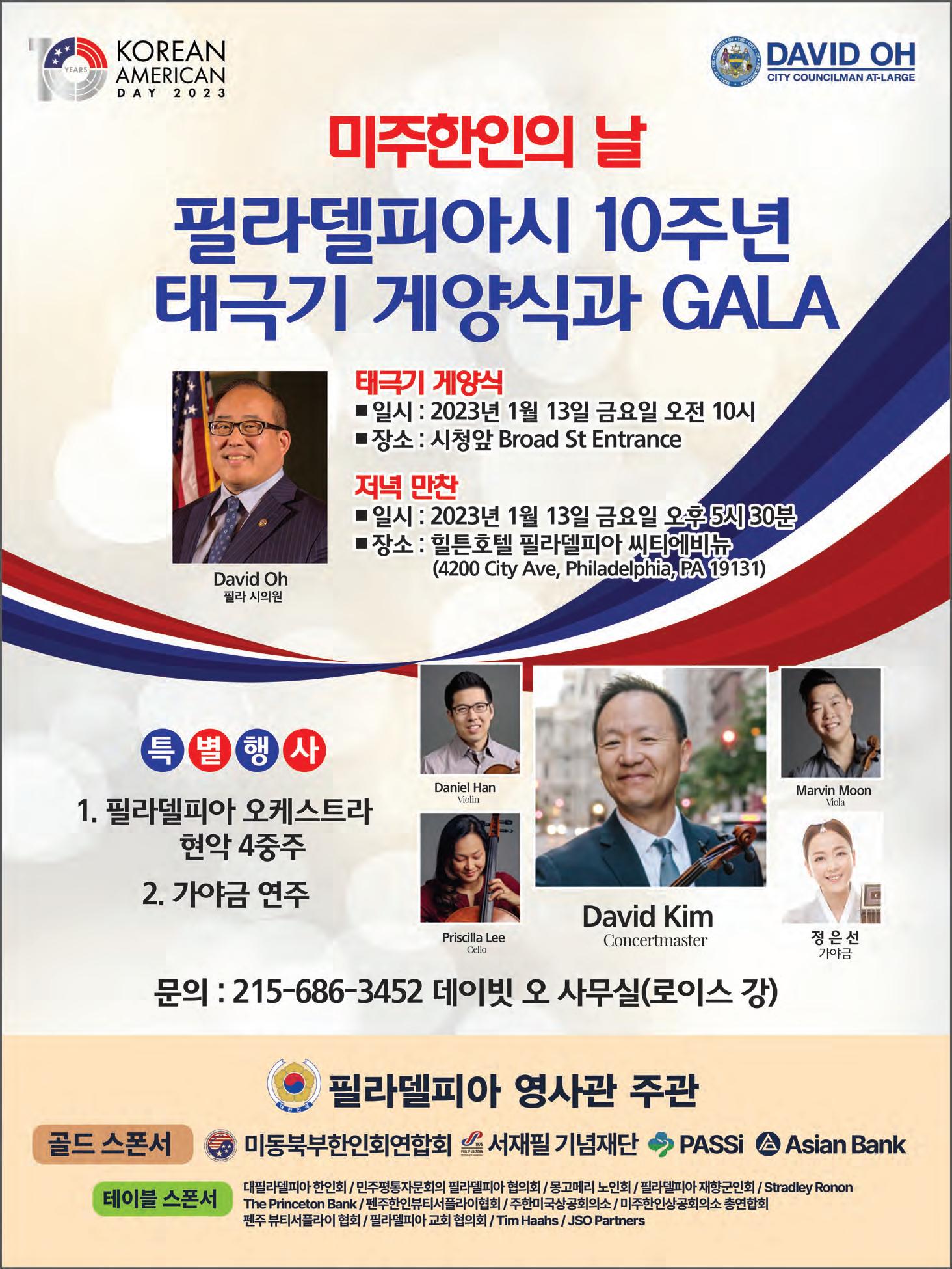 2023년 새해가 밝았습니다. 새해에도 필라델피아 한인 동포 사회가 미주류사회에 잘 적응하고 모범을 보여주는 한민족임을 알리는 길잡이가 되어 주시길 부탁드립니다. 특히, 노인세대는 미국에 살면서도 사회, 경제, 복지 등 많은 혜택을 알지 못하고 살아가는 현실을 감안하여 빈곤, 취약층이 고루 혜택을 받을 수 있 도록 선도 역할을 부탁드리며 다시 한번 새해 축하 인사를 드립니다. 감사합니다.