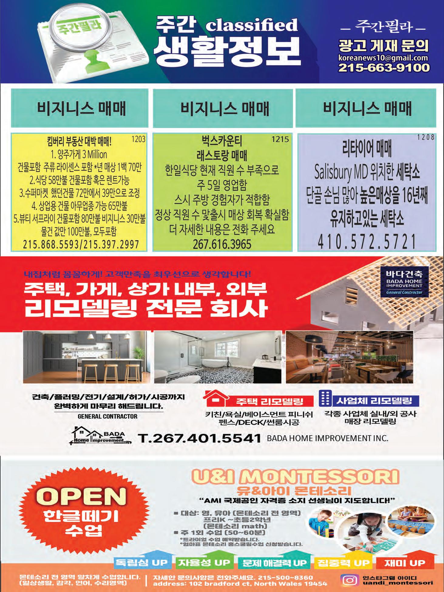 주간필라 DEC 30.2022-JAN 5.2023 121 www.juganphila.com 구인 I 구직 광고