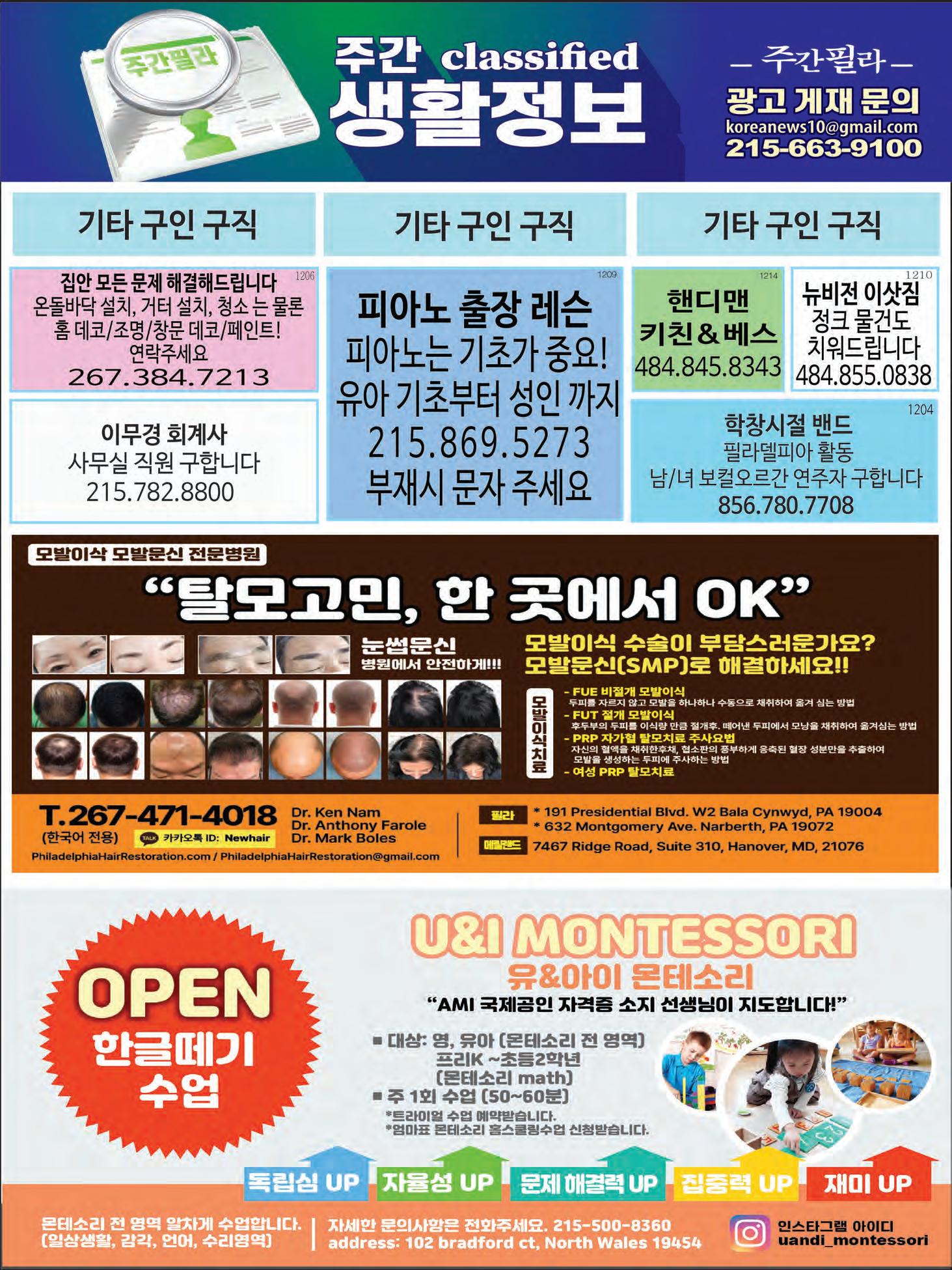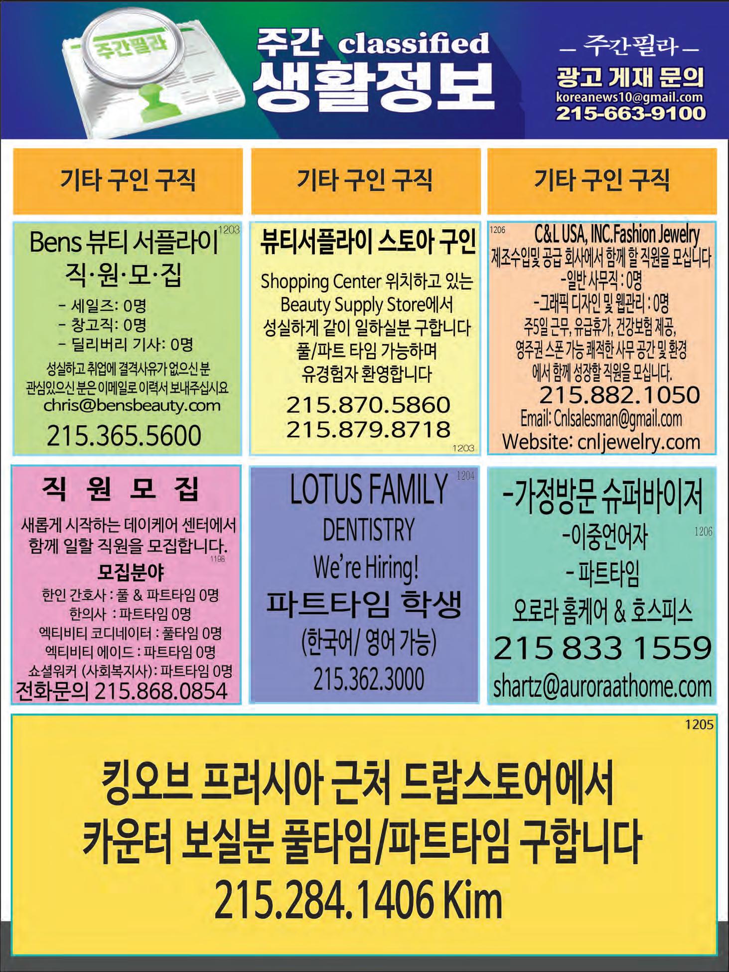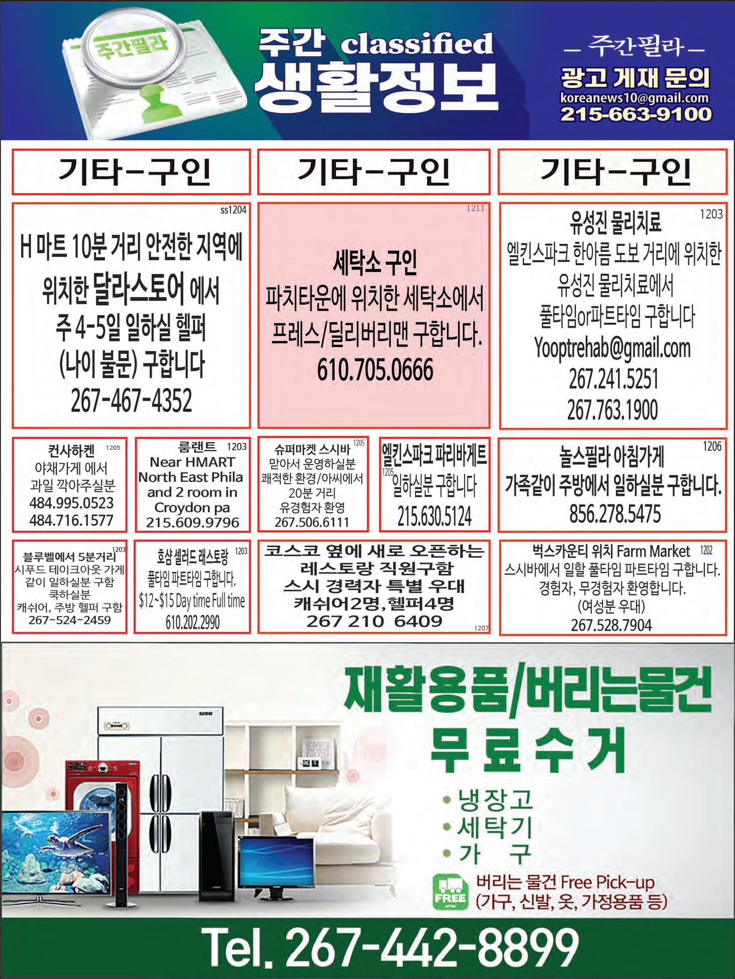 주간필라 JAN 6.2023-JAN 12.2023 122 www.juganphila.com 구인 I 구직 광고