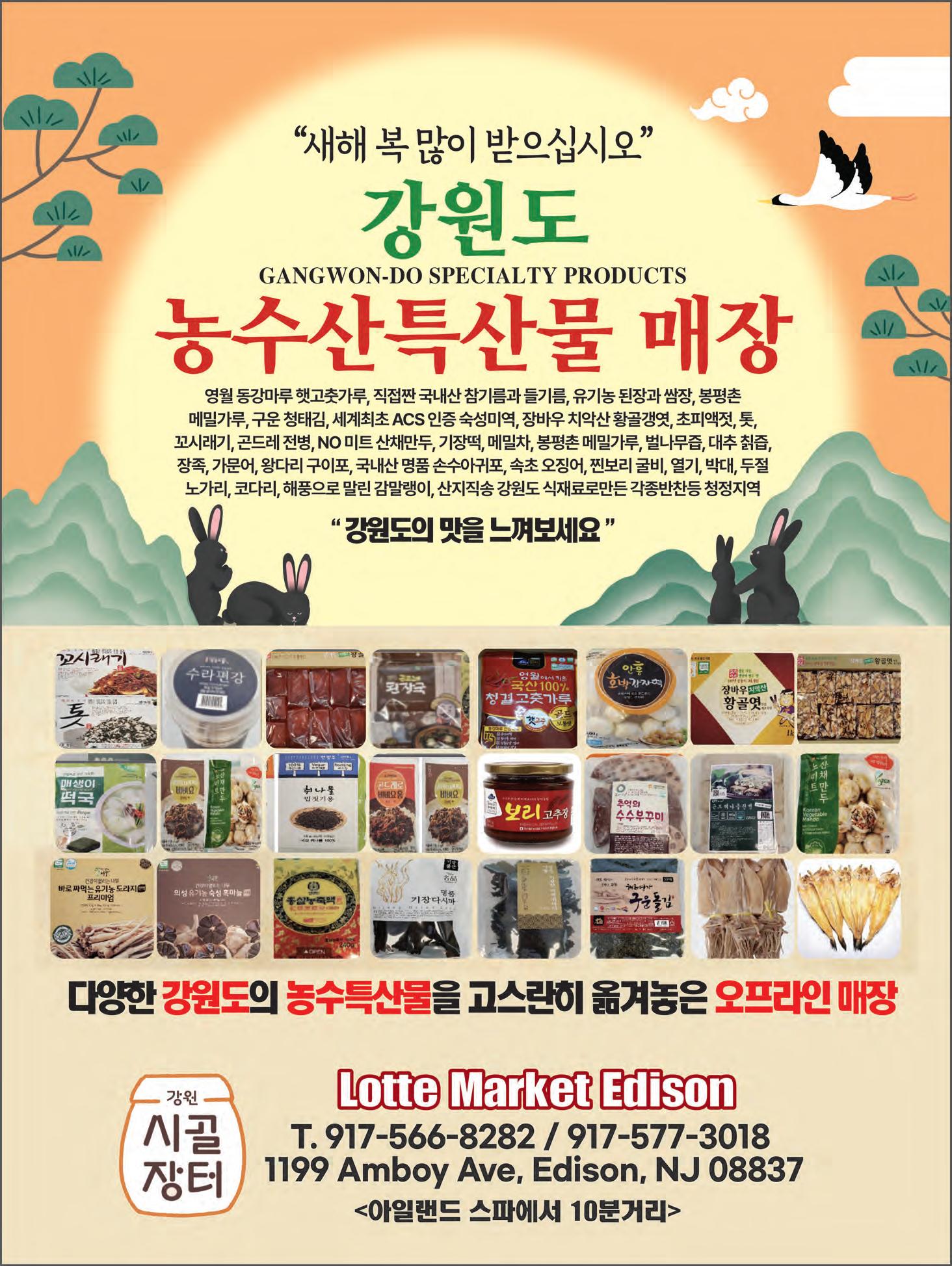 NJ 08817 ▪ Lotte Plaza 마켓 1199 Amboy Ave, Edison, NJ 08837 2023년 주간필라 한인록 배포장소 광고 리스팅 문의 및 배포장소 안내 이번 주간필라 한인록은 작년과 동일하게 326페이지로 구성되어 있고, 우리 한인사 회에 꼭 필요한 마트, 식당, 보험, 학교, 병 원을 비롯하여 이민, 법률, 건강 등 유용한 생활정보를 가득 담았다. 지난 23년간 꾸준히 아껴주시고 격려해 주신 한인 교민 여러분들에게 더 알차고 유익한