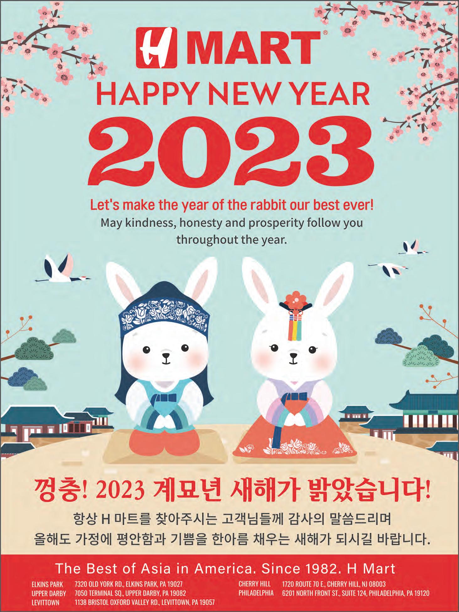 주간필라 JAN 6.2023-JAN 12.2023 23 www.juganphila.com 집중 탐구 ▪ 주간필라 사무실 1364 Welsh Rd., Ste A260, North Wales, PA 19454 ▪ 아씨 마켓 1222 Welsh Rd., North Wales, PA 19454 ▪ H Mart 첼튼햄 7320 Old York Rd., Elkins Park, PA 19027 ▪ H Mart 필라델피아 6201 N Front St., Philadelphia, PA 19120 ▪ H Mart 체리힐 1720 Rt 70 East, Cherry Hill, NJ 08003 ▪ H Mart 어퍼다비 7050 Terminal Square, Upper