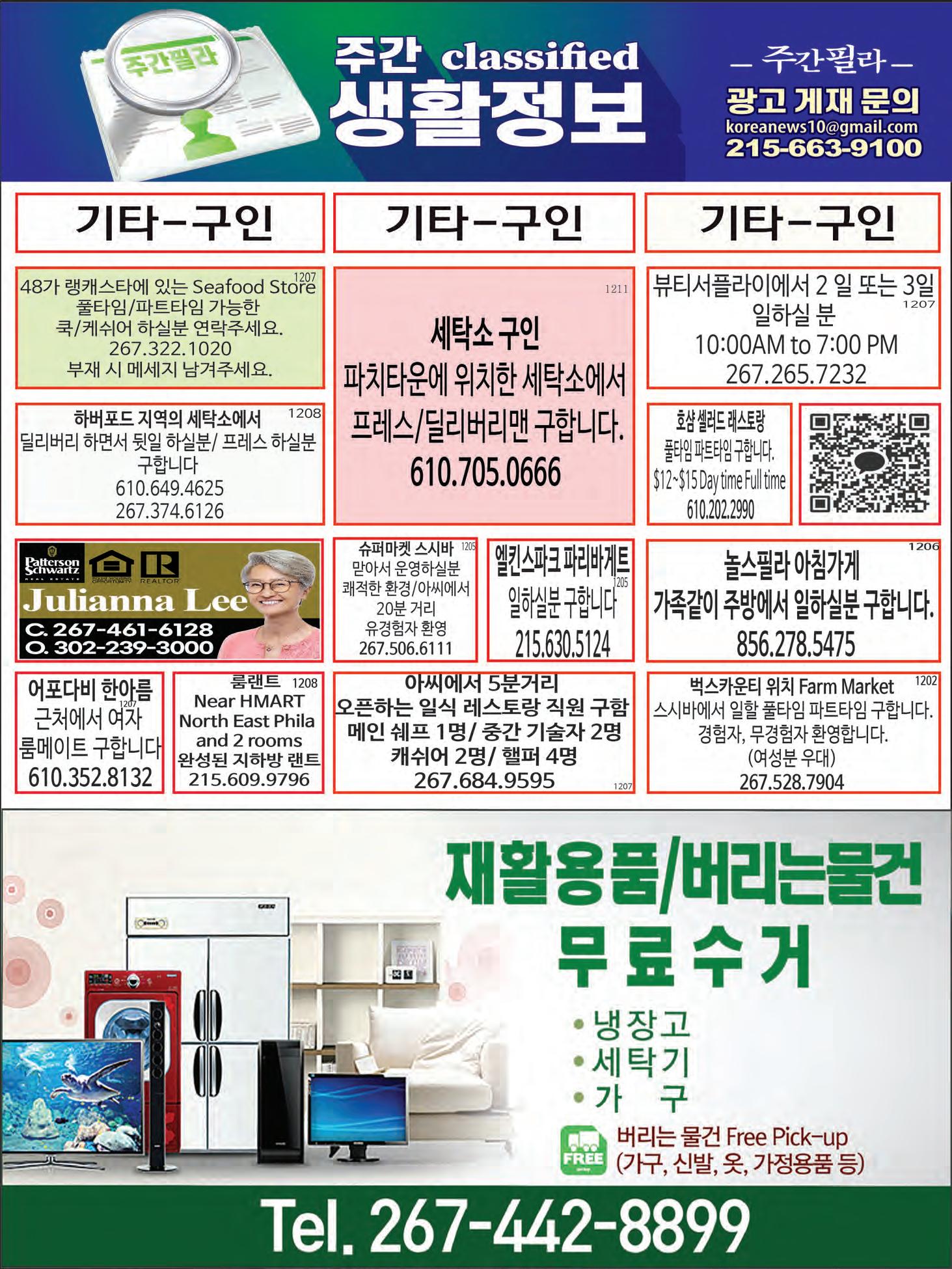 주간필라 JAN 20.2023-JAN 26.2023 121 www.juganphila.com 구인 I 구직 광고
