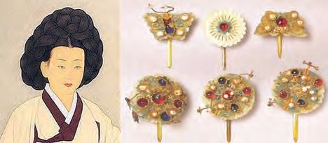 머리에 꽂는 장식을 생각하지 않을 수 없다. 부인들의 머리장식은 확실히 우리