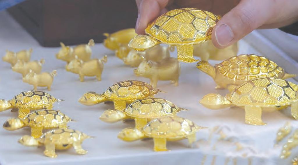 3월24일 KRX 금시장이 거래를 시작한 이후 최고가다. 한국거래소에 거북이 모양의 금이 진열돼 있다.