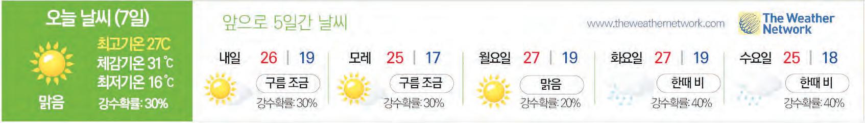낮 최고 기온은 7일(금) 27도, 8일 (토) 26도, 9일(일) 26도, 10일9월) 28도로 예보됐다. 그러나폭염이다시돌아올수도있다. 세계기상기구(WMO)는 지난 4