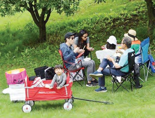▲ 자녀들과 행사장을 찾은 가족이 나무 밑에서 식사를 하고 있다. 피크닉 분위기가 물씬 풍 긴다.