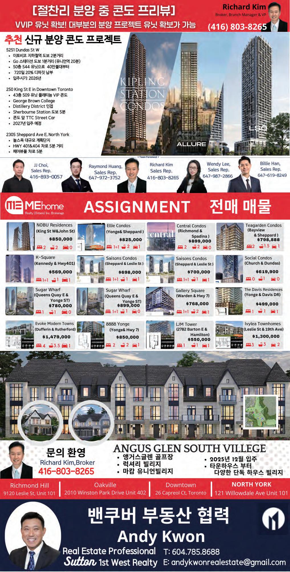 임 ● 아주 예쁜 정원과 텃밭 ● 아주 동네좋은 북부 오샤와지역 ● 2 가라지, 큰 방 4개, 화장실 3 ● 아주 고급지게 레노된 2층집 ● Dishwasher Hood 2022 ● 지붕 2019 ● House와 콘도의 장점을 가진 ● 2년된 모던한 업그레이드 된 ● 콘도 타운 코너유닛 ● 낮은 관리비 ● 파킹, 락커 포함 ● Visitor Parking For Lease ● 근처 병원 은행 식당 subway지하 연결 ● 2 bed+Den 950 sq ft 1파킹&롹커 ● 2 bed 2 wash 1파킹&롹커 condo ● 동향 park view 콘도 타운홈 다운타운 콘도 Detached House FOR SALE FOR SALE FOR SALE ● 1+덴, 647 sq ft+발코니 (Spadina+Richmond St W) ● 아주 깨끗한 유닛 SOLD OVER ASKING LEASED SOLD Asking $1,165,000 Asking $699,900 Listing $625,000 $4,000 $3200 416.447.7788 ◆이자만 내는 모기지 ◆2차(Second) 모기지 1000불 추가주식 올해 연 15% 이상 배당 예정 예금/대출 담당직원/책임자 모집 *금융기관 퇴직하신 분 재 취업 환영 고객 감사 이벤트 (작년기준 배당금 20% 지급하였습니다.) 정기예금 변동금리 (P-0.70) 6.50%