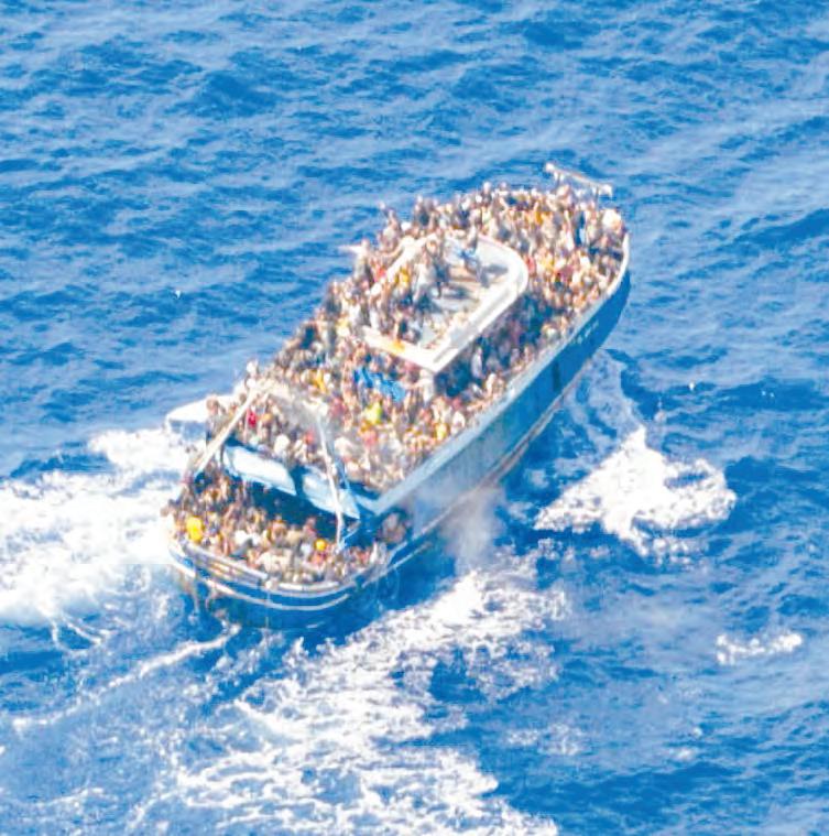이주민을 가득 태운 밀항선이 14일 그