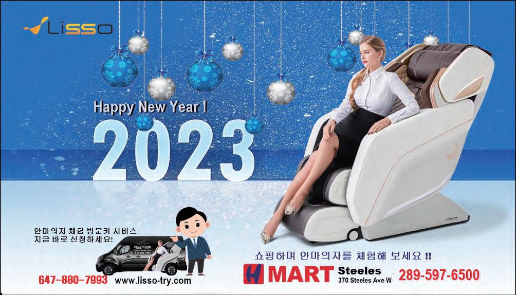 B16 Friday, January 27, 2023 2023년 1월 27일 (금) 핫리스팅 Homelife Frontier Realty Inc. 7620 Yonge St. #400, 416-218-8800 416.659.4380 realtorjhl@gmail.com 이준호 Broker Convenience $139,000 ● 교외 50분 쾌적한 환경의 소도시 Downtown ● 높은 마진과 손쉬운 경영 ● Size: 1,152 sq. ● Rent: $1,567(inc. TMI) + HST/M until Sept. 2023 $1,638(inc. TMI) + HST/M until Sept. 2028 ● Sales: $9,000 / W (담배 60% - Margin12%, 담배이외 평균 Margin 40%이상) ● Lotto 수입: $3,500 /M ● ATM, Nevada etc.: $500 / M ● Net Profit: $10,000이상 / M 단독주택 렌트 $4,700 ● Thornhill Woods에 위치한 2층 단독주택 ● 4베드룸 + 4 화장실 ● Finished & Walk-Out Basement ● 2 Car Garage + 4 Car Parking Driveway ● Fully renovated Bathroom, New Hardwood Floor ● Brand New Top Line Kitchen Appliances Leased Leased SOLD SOLD 언론계 24년, 패스트푸드 프랜차이즈, 편의점 등 16년 운영 기원탁 David Kee Sales Rep. 647.501.9990 ■ 노스욕 Sheppard/Leslie 지하철 도보 2분. ■East Don Parkland 숲속 건설 대규모