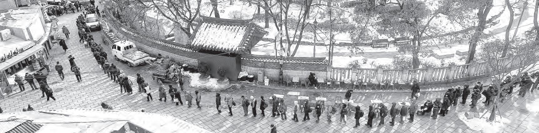 A7 Friday, December 30, 2022 2022년 12월 30일 (금) 오피니언 오늘의 트윗 "한국은 너무 발전했고 모두들 아주 잘 산다"... 자주 듣는 말이다. 그래서 본보 23일자 B13쪽에 게재된 원각사 급식소 앞 길게 늘어선 노인들의 줄 사진에서 쇼크를 받았다. 점심으로 먹을 동지팥죽 한 그릇을 받기 위해 엄청난 강추위를 무릅쓴 노인들. 추위보다는 허기진 배가 더 문제이므로. 하기야 캐나다·미국같이 잘 산다는 나라도 집없는 사람들이 한끼 해결을 위해 밥 냄새나는 쪽으로 꾸역꾸역 몰려드는 것도 사실이다. 그러나 이곳 홈리스는 좁은 공간을 못 견디는 정신장애자들 이 많다는 점에서 배고픈 모국 노인들과는 다르지 않을까. 탄소 배출을 줄이지 않으면 60년 뒤 한국 남 부지방에 겨울이 사라지고, 여름이 1년의 절반 인 6개월로 늘어날 거란 전망이 나왔다. 폭염 일수도 크게 늘어 대구와 광주는 한 해의 3분 의 1 동안 폭염이 발생할 것으로 보인다. 29일 기상청이 이 같은 내용을 담은 2081~2100년 지역별 기후 전망을 발표했다. 이는 지난해 8월‘기후변화에 관한 정부 간 협 의체(IPCC)’가 전 세계 기후 전망을 담아 내놓 은 6차 평가보고서를 토대로 기상청이 국내 전 망을 도출한 것이다. 온실가스를 지금처럼 배출할 경우 2081년 부터 부산·대구·광주·울산·전북·전남·경 남·제주 지역에는 겨울이 사라진다. 다른 지 역의 겨울도 짧아져 서울 28일, 인천 42일, 대 전 10일, 세종 63일, 경기 65일, 강원 71일, 충 북 67일, 충남 41일, 경북 10일 등으로 감소할 전망이다. 반면, 여름은 전국 평균 183일로 6개월까지 길어진다. 폭염 일수는 전국 평균 97일로 예 측됐다. 1년의 절반이 여름이고, 여름의 절반