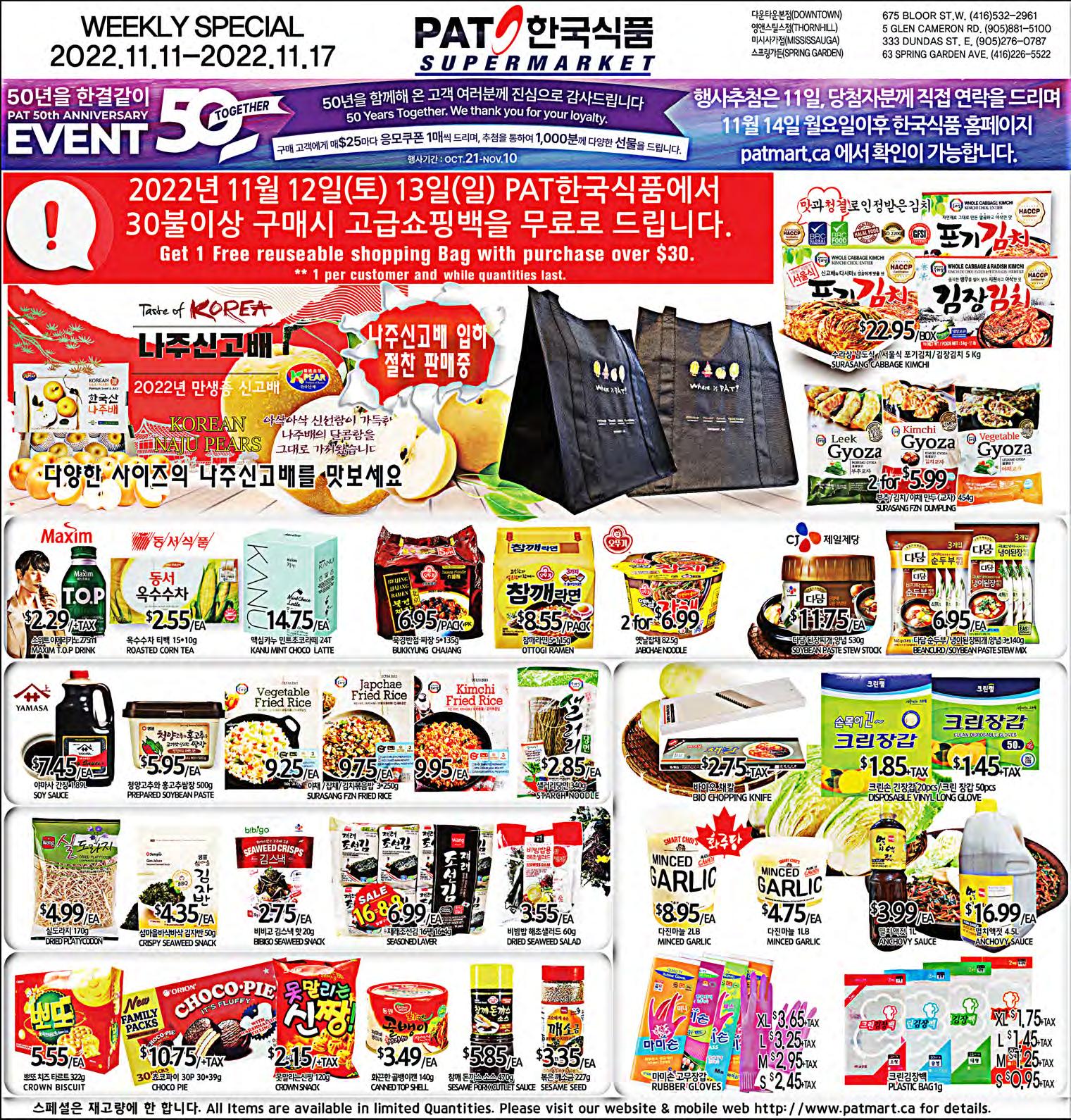 2022년 11월 11일 금요일 노스욕 신선한 농산물과 구첩반상의 반찬 장이 펼쳐집니다 홍합, 새우, 낙지등 다양한 수산물 가득 준비하였습니다. 180 Steeles Ave West Thornhill 달콤한 과일과 신선한 채소를 좋은 가격으로 판매중입니다. 647-869-7370 Etobicoke Business Hours 수~토 (10~6시), 일 (10~5시), (월,화: CLOSED) 175 the west mall Etobicoke 오전11시~오후4시까지 매주 금,토 초대박 세일 조기 온타리오산 햇마늘 $4/99/1b$4.99 Special 배추 Reg.$140.00/1box Reg.$8.00/1b $45. /boxReg.60.00 $100.00/1box $6.00/1b 갈치 Super Special Super Special 햇고구마 $20/1bag Special 온타리오산 5년근 수삼 $20/1box BBQ Restaurant 1. 갈비찜 2. 양념코다리 3. 양장피 4. 족발 5. 잡채 6. 모듬 새우튀김 7. 탕수육 8. 홍어회 9. 겉저리 10. 나물 11. 나물 12. 오이무침 캐터링 오더는 10인 이상 $40부터~$50~$60까지 with 셀몬 사시미 $50 with 랍스터 $60 단감 블루베리 $60/1box 무청 Special 해와달에서 연말 파티 예약 받습니다 Special 하치야홍시 사과 줄기토마토 Special 풋고추 Special 오리귤 Special Special Special Special $12.95 1. 설렁탕 2. 사골 우거지 해장국 3. 고등어구이 정식 12시부터~3시까지 해와달 코리안 B.B.Q 착한 가격으로 정성스럽게 모시고자 합니다. 삼일 밤낮으로 우려낸 사골 국물 입니다
