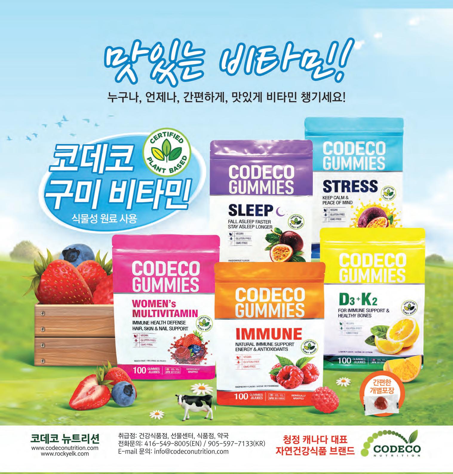 2023년 1월 6일 금요일 파격세일 5+1 5병 구입시 1병 무료 여왕벌의 힘의 원천! 장수의 비밀! ■ 남성과 여성의 생식기관 정상화 ■ 노화 방지 ■ 피로회복, 영양섭취 ■ 면역체계 보호 ■ 치매예방 120cap 효능 명품 건강식품 퓨어네이쳐스 생로얄젤리 6X 7181 Yonge St. (Shops on Yonge 내 66호) (월드온영 - 구 갤러리아장소) STEELES AVE. DONCASTER AVE. YONGE ST. N 웰빙건강 할인 도•소매 럭스데이 숯침대, 소파 판매/AS T)416-226-6100 416-629-5927 남자는 수퍼파워 ‘힘’이다! 더욱 새로워진 수퍼파워는? 성기능 항상과 혈액순환 강화, 전립선 기능강화 발기부전, 신진대사 촉진에 탁월한 효과 1Capsule 복용으로 평균 3일 이상을 부작용 없이 남성의 프라이드를 지킬수 있습니다. 순수 생약성분으로 만들어져 두통 눈의 충혈, 얼굴의 화끈거림등의 부작용이 없습니다. 천연 생 로얄젤리 2+1 항암효과 탁월, 위장, 당뇨, 간기능 회복, 갱년기 장애 극복 영신 생 로얄젤리 판매 NEW www.pure-natures.com 스페셜 3+1 NEW 4배로 강해진 120cap, 750ml 롯데글로벌택배 무료포장 서비스 토론토 최저가 항공택배 귀국이삿짐 전문 5+1 5 신제품 출시기념 신제품 20 대 1 고농축 아로니아 베리 세계 최고의 슈퍼 황산화 열매 브라질 아사이베리 Brazil Acai AÇAI P R E U M GOLDEN 시력 개선 기억력 향상 강력한 황산화 작용이 노화를 지연 성인병 예방과 다이어트에 도움 100% ORGANIC HGHLYCONCENTRATED 50:1 EXTRACT 50배(brix) 고농축 스페셜 5+1 5 NEW KBS 생로병사의 비밀에 소개된 양파즙의 효능 뇌경색, 고혈압, 당뇨 등 피를 맑게 해 드립니다. * 2박스 이상 주문시 무료배달 배즙, 호박즙, 포도즙, 토마토즙, 칡즙,석류즙,흙마늘즙, 헛개나무즙,힌민들레즙,양배추즙 브라질 APIS 그린프로폴리스 * APIS 그린프로폴리스 추출방법은 항생성분인 Flavonoid를 최상급으로 만든 최고의 제품 천연항생제 / 염증완화 / 면역 방광염 / 구내염 / 인후염 감기, 독감예방 / 암예방 퓨어네이쳐스 20배 고농축 폴란드산 아로니아캡슐은 아로니아 전체 생산량의 90%를 담당하는 폴란드에서 생산된 제품입니다 3 3 천연 생 로얄젤리 파우더 • 위장장애 개선 • 면역력 강화 • 항암작용 (10-HDA) • 어르신들 노화 방지 • 노인 분들 치매 예방 150g 피로회복에 탁월한 효과 이런 분께 추천 합니다 폴리코사놀 쿠바산 "최상의 효과 저분자 콜라겐" 하이드롤라이즈드 콜라겐 파우더 “혈관 건강 효과율 1위” 피부·관절 탤런트 I 전원주 “이 기회를 정말 놓치시면 안돼요”