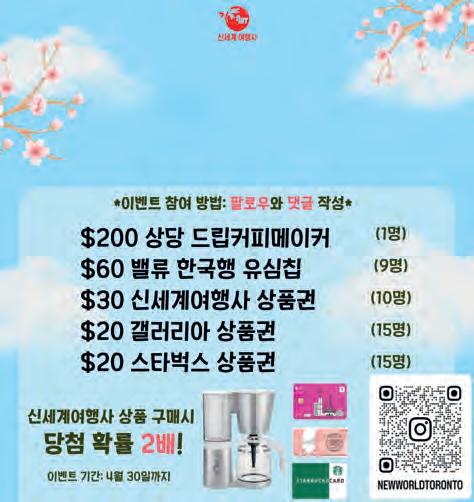 왕복6개월권, 무료수하물 2개, 토론토 출발 주중 요금, 세일요금최저가예시
