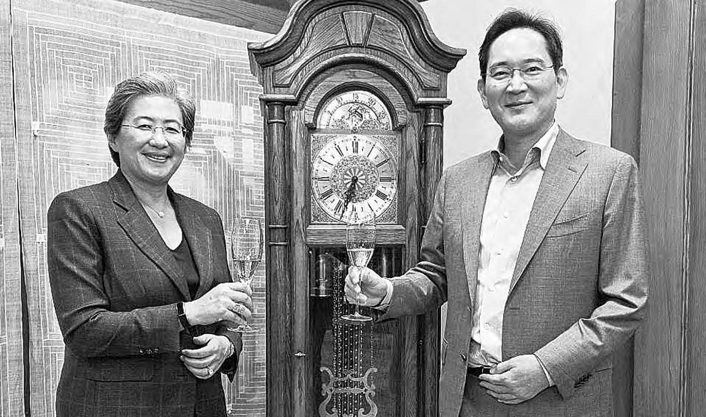 이재용 삼성전자 회장과 리사 수가 업 계의 시선이 GTC에 쏠린 틈에 손을 맞 잡은 것도 공교롭다. 전날 각각의 경쟁 상 대인 최태원 SK그룹 회장과 젠슨 황 엔