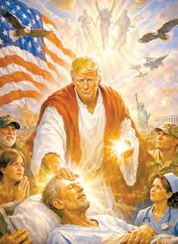 듯한 장면이 그려져 있다. 배경엔 미국 국기와 독수리, 자유의 여 신상이 자리했고, 위쪽으로는 전투기와 천사가 된 듯한 군인들의 그림자가 그려져 있다. 김현우 기자