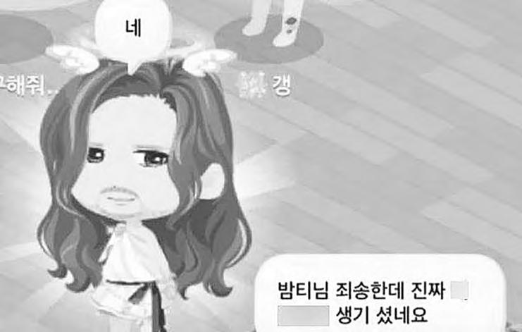 ▲ 2025년부터 젠Z 및 MZ세대에 유행하기 시작한 ‘밤티’ 밈 유래 사진. 게임 라인플레이 유 저의 아바타와 대화가 캡처되어 밈이 되었다. 나무위키 ‘밤티’ 페이지 이미지 캡처