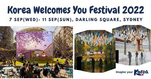 MAIN NEWS The Korean Herald 2nd September 2022A24 시드니 도심 한복판에서 대형 스크린을 통해 한국 의 아름다운 풍경이 펼쳐 진다.한국관광공사 시드니지 사(지사장 이인숙)는 올 추 석을 기해 이달 7일부터 11일까지 시드니 달링스 퀘어 잔디광장에서 한국관 광 홍보행사 ‘Korea Welcomes You Festival’을 개최한다. 이 기간 동안 청사초롱 이 반겨주는 행사장을 방 문하는 관람객들은 봄꽃 핀 남산공원, 시원한 여름 풍경의 부산 감천마을, 가 을단풍이 아름다운 곤지암 화담숲, 겨울 눈꽃이 장관 인 김제 금산사 등 한국의 아름다운 사계절 관광지로 래핑된 6세제곱미터 규모 의 대형 큐브를 만나게 된 다.이 큐브에 들어서면 360 도 화면에 둘러싸여 서울 광화문, 석양이 지는 안면 도, 버스킹이 펼쳐지는 홍 대, 부산의 새로운 명물 블 루라인 파크, 네온사인 가 득한 쇼핑거리를 여행하는 듯한 경험을 제공하는 미 디어 아트 영상을 무료로 즐길 수 있다. (행사기간 중 매일 오전 11시~오후 8시)큐브 인근 한국관광 안 내데스크에서는 한국관광 홍보물과 함께 개별여행 예약사이트 ‘클 룩’(Klook)에서 신규회 원 가입 및 한국여행상품 구매시 사용가능한 10달 러의 할인 바우처(선착순 600명 대상)를 배포한다. 한국관광 설문 이벤트에 참여하면 시드니 출발 한 국 왕복 항공권 경품 당첨 의 기회도 주어진다. 또한 어린이들에게 특히 인기 있는 한국관광 마스 코트 ‘킹덤프렌즈’ 캐릭 터 호종이(호랑이), 무고미 (곰), 까우(까치) 조형물과 함께 사진을 찍을 수 있으 며 9일(금)부터 11일(일. 각 오전 11시부터 오후 2 시)에는 방문객들을 반겨 주며 한복 입은 초롱이, 색 동이와 포토타임도 즐길 수이인숙있다. 시드니지사장은 “한국의 입국규제가 점차 적으로 완화되는 등 한국 방문 여행자를 맞이하기 위한 준비를 지속적으로 하고 있다”면서 “시드니 동포들께서도 행사장을 방 문하시어 대형 화면을 통 해 한국관광 미디어아트 영상을 관람하시고, 다양 한 이벤트 등 이번 행사를 즐겨주시길 바란다”고 당 부했다.‘Korea Welcomes You Festival’ 프로그램 에 대한 자세한 정보는 계획이다.제공하는덤프렌즈700명(산착순)에게는브라이트사전등록한해eventbrite.com.au)를(koreawelcomesyou.행사안내벤트브라이트(Eventbrite)이페이지통확인할수있다.이벤트브라이트를통해방문자(이벤트티켓소지자)킹물병을선물로이벤트도진행할 ■ Korea Welcomes You Festival 개요 -일시 : 9월 7일부터 11일 까지(매일 오전 11시~오후 8 시)-장소 : Darling Square(35 Tumbalong Bvd,-행사안내Haymarket)사이트 : koreawelcomesyou. eventbrite.com.au 기사제공 한국관광공사 시드니지사 시드니 도심 한복판에서 한국의 아름다운 사계절을 알리며 색다른 이벤트가 마련된다. 한국관광공사 시드니 지사는 크게 나아진 바이러스 상황에 서 한국 여행에 대한 현지인들의 관심 제고를 위해 대형 규브를 통해 한국 각지의 아름다운 풍경을 소개하는 ‘Korea Welcomes You Festival’을 마 련했다. 사진은 이번 행사가 예정된 달링스퀘어 광장. 사진 : 한국관광공사 시드니지사 ‘Korea Welcomes You Festival’을 알리는 포스터. 사진 : 한국관광공사 시드니지사 시드니 도심 한복판에서 360도 영상으로 접하는 한국의 사계절 풍경들 한국관광공사 시드니지사, 달링스퀘어 광장서 ‘Korea Welcomes You Festival’ 개최 서울 광화문-홍대거리-부산 명물 블루라인 파크 등 담아... 한국 상징물 ‘포토존’도