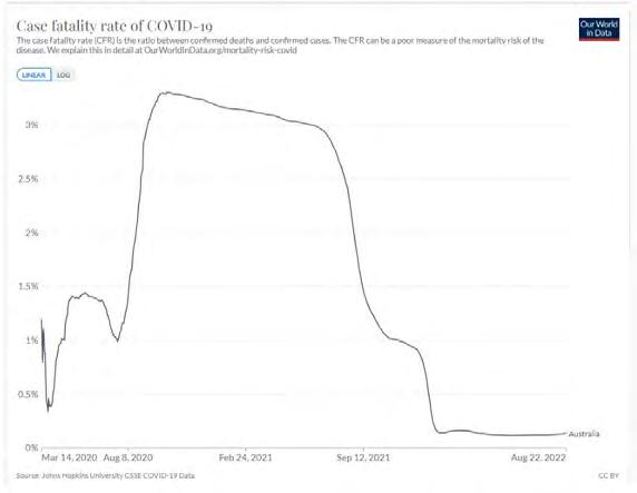 INSIDE Magazine The Korean Herald 2nd September 2022A18 앤서니 알바니스 총리의 높은 대중적 지 지도, 정점에 도달한 것일까... A3면 “가계비 절감을 위한 70억 달러 규모 지원, 적극 활용하세요” A4면 겨울 시즌이 끝나가면서 호주의 COVID-19 일일 감염사례도 감소하고 있다. 이런 상태로 코로나바이러 스 대유행이 종식되기를 바 라는 마음은 모두에게 간절 할 것이다. 하지만 전염병 전문가들은 최근의 관련 수 치를 기반으로 “아직은 아 니다”며 경계를 늦추지 않 는다. ▲ 감염자 차트, 하락세= ABC 방송이 관련 당국의 자료를 기반으로 작성해 보 여주는 감염자 차트 (‘Charting the Spread’. 그림 1 참조)는 지난 7월 이 후 하락하는 양상을 보여준 다. 보건 당국은 지난 7월 21일 5만5,000명 이상의 COVID 감염 사례를 보고 했으며, 이후 감염 사례는 점차 줄어들고 있다. 지난 달 넷째 주, 일일 확 진자 수는 1만 명에서 2만 명 사이를 맴돌았다. COVID-19 발병으로 인한 병원 입원자는 지난 7월 26 일 정점에 달했다. 이날 입 원환자 수는 5,571명이었 다. 이후 7일 동안의 평균 입원자는 정점에서 60% 수 준으로아울러하락했다.7월 29일, COVID-19로 인한 일일 사망자는 157명으로 최고 치를 보인 이후 이 또한 감 소세를 보였으며 지난 주 토요일인 8월 27일에는 62 명으로 줄었다. ▲ 호주의 COVID 사망자 비 율, 다른 국가보다 적은 편= 미 국 존홉킨스대학교(Johns Hopkins 인한다”고료법라니라진COVID-19de밀리언벌Policy’Education‘Mitchell교(Victoria크게이였다.기주의면자Data’의보여주는Repository’를‘COVID-19University)의Data활용하여‘OurWorldinCOVID-19사망비율(그림2참조)을보이전염병으로인한호치사율은백신이나오이전1%에서3%사이그리고지난달(8월),수치는0.14%수준으로감소했다.멜번소재빅토리아대학University)InstituteforandHealth책임자이자글로공공보건전문가인맥시드코튼(MaximilianCourten)교수는치사율이낮아것에대해“백신뿐아전염병이진행됨에따개발되는보다나은치및그프로토콜에기설명했다. ▲ 그렇다면... COVID 사태 는 거의 끝나가는 것일까?= 드 코튼 교수는 “아마 그렇지 는 않을 것”이라고 말했다. “불행하게도 이 바이러스 는 약 6개월마다 감염파동 을 일으키는 매우 다른 변 이를 보여주고 있기에 이것 (감염자 및 사망자 감소 추 세)이 전염병 종말의 시작 이라고 말할 수는 없다”는 것이다.이어“이는 숫자(전 세계 의 감염자들) 게임”이라는 드 코튼 교수는 “(COVID-19 변이는) 기 본적으로 복제 오류로 인해 발생하고, 전 세계적으로 많 은 감염자가 나올수록 어딘 가에서 또 (새로운 변이가) 발생할 가능성이 높다”고 설명했다. ▲ 팬데믹은 얼마나 더 지속 될까= NSW대학교 공공보 건대학원 제임스 우드 (James Wood) 부교수는 “ 일일 감염사례가 감소하고 있지만 이것이 전염병 사태 의 끝을 의미하는 것은 아 니다”고 말했다. 그는 현재 의 세계적 대유행이 연말 이후에도 계속될 것으로 보 고우드있다.부교수는 “확실히 팬데믹 사태는 쇠퇴하는 단 계에 있다”면서 “호주의 경우 현재로서는 연말까지( 더 이상은 아닐지라도) 지 속될 것으로 예상한다”고 말했다.그러면서도 그는 “하지 만 북반구의 겨울 시즌에 새로운 감염 파동이 나타난 다 해도 그리 놀라운 일은 아닐 것”이라며 “올해 연 말과 연초(크리스마스와 새 해 동안), 어디서나 같은 패 턴을 가질 것으로 보지는 않는다”고 덧붙였다. “대 유행은 보통 모든 대륙에서 동시에 새로운 바이러스 전 염병이 나타날 때 선언되기 에 우리는 그때까지 현 상 황을 벗어나지 못할 것”이 라는 설명이다. ▶22면으로 herald@koreanherald.com.au김지환이어짐기자 COVID-19는 언제, 어떻게 종식될까... 최상-최악의 시나리오는 일부 국가들, ‘PHEIC’ 상황에서도 COVID-19 관련 방역 조치 대부분 철회 전문가들, “조만간 끝나지 않겠지만 팬데믹이 쇠퇴 단계에 있음은 분명하다” 진단 현재 호주의 COVID-19 일일 감염자 및 사망자 수는 감소하는 상황이다. 그렇다고 해 서 이것이 COVID-19 사태의 종말을 알리는 시작점이라고 할 수는 없다는 게 전문가 들의 말이다. 사진 : Pixabay / Surprising_Shots 그림 1. 지난 7월 이후 호주의 COVID-19 감염 사례는 꾸준히 감소하고 있다. 사진 : ABC 방송 ‘Charting the Spread’ 그림 2. 호주의 COVID-19 치사율은 이 전염병 사태 초기에 비해 크게 낮은 수준이 다. 그래프 : Our World in Data(Johns Hopkins University CSSE COVID-19 Data를 기반으로 한 것임)