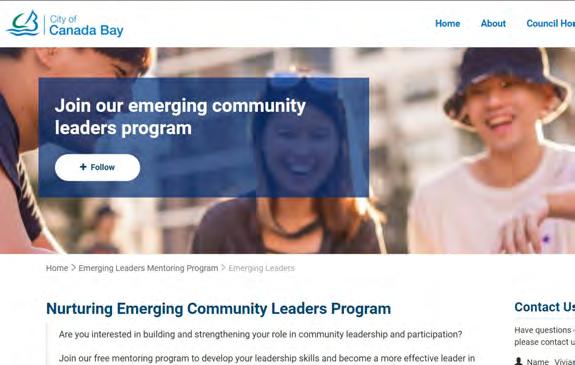 MAIN NEWS The Korean Herald 2nd September 2022A8 캐나다베이 시(City of Canada Bay) 지역 내 신 진 지도자를 위한 20주 과 정의 리더십 및 멘토링 Local사회결속이는Program’)이Emerging로그램(‘Nurturing프Leaders진행된다.NSW주의지방정부보조금(NSWGovernment Social Cohesion Grant) 에 의해 계획된 것으로, 캐 나다베이 카운슬은 8만 8,000달러를 확보한 상태 이다.이달부터 시작되는 신진 지도자 육성 프로그램은 캐나다베이 지역사회 구성 원의 사회참여, 리더십 구 축을 돕는다는 취지이며 또한 지역사회 네트워크 강화를 위한 프로젝트, 이 벤트 및 이니셔티브 실현 을 지원하게 된다. 이 프로그램의 배경은, 지방정부의 경우 커뮤니티 결속과 문화적 포용을 강 화하는 풀뿌리 이니셔티브 를 제공하는 가장 적합한 위치에 있기 때문이다. 프 로그램은 시 의회와 지역 사회 각 단체간 관계를 기 반으로 보다 강한 네트워 크, 폭넓은 커뮤니티 참여 를 촉진해 지역사회 발전 을 위해 협력한다는 것에 목표를 둔다. 이에 따라 캐나다베이 카 운슬 내 다양한 문화적 배 경을 가진 단체 지도자들 은 이 프로그램에 참여할 수 있으며, 이에 대한 내용 은 캐나다베이 카운슬 웹 사이트의 관련 (https://collaborate.페이지 게프로그램을며는민지와트에Karras)회의다.Association’에서‘Burdekin상의ofCommunities’티‘NSW프로젝트조하면emerging-leaders)를mentoring-program/emerging-leaders-canadabay.nsw.gov.au/참된다.멘토는시의회직원과파트너인소수민족커뮤니협의회’(EthnicCouncilNSW)및12-24세대청(소)년지원기구인선발한소수민족커뮤니티협의매리카라스(MaryCEO는이프로젝대해“적극적인지커뮤니티리더십,시참여및역량을구축하데도움이될것”이라“캐나다베이시와이협력,진행하되어기쁘다”고말했 다.멘토와 참가자는 다양한 성별, 연령별 그룹, 각 문 화-언어 배경의 대표자를 대상으로 다”고는한다베이이있는더십과지역사회심는(Graham그레이엄Development및Association’의‘Burdekin한다.비즈니스Stakeholder책임자인바그와나Bargwanna)씨“캐나다베이지역핵젊은이들과교류하고이익을위해리잠재력을키울수좋은기회”라며“프로그램을통해캐나지역사회에바람직사회적결과를달성하데도움이되었으면한말했다. 김지환 기자 herald@koreanherald.com.au 캐나다베이 시(City of Canada Bay)가 지역사회 젊은 단체 지도자들을 대상으로 20주 과정의 리더십 및 멘토링 프로그램(‘Nurturing Emerging Leaders Program’)을 시작한다. 사진은 동 카운슬의 관련 웹사이트 페이지. 사진 : 김지환 기자 / The Korean Herald City of Canada Bay, 지역사회 신진 지도자 대상 ‘리더십 프로그램’ 계획 NSW 정부로부터 ‘커뮤니티 결속’ 기금 확보, 20주 과정의 멘토링 프로그램 진행 교육 목표는 ‘지역사회 구성원들의 강한 네트워크-지역 발전을 위한 협력 기반 구축’