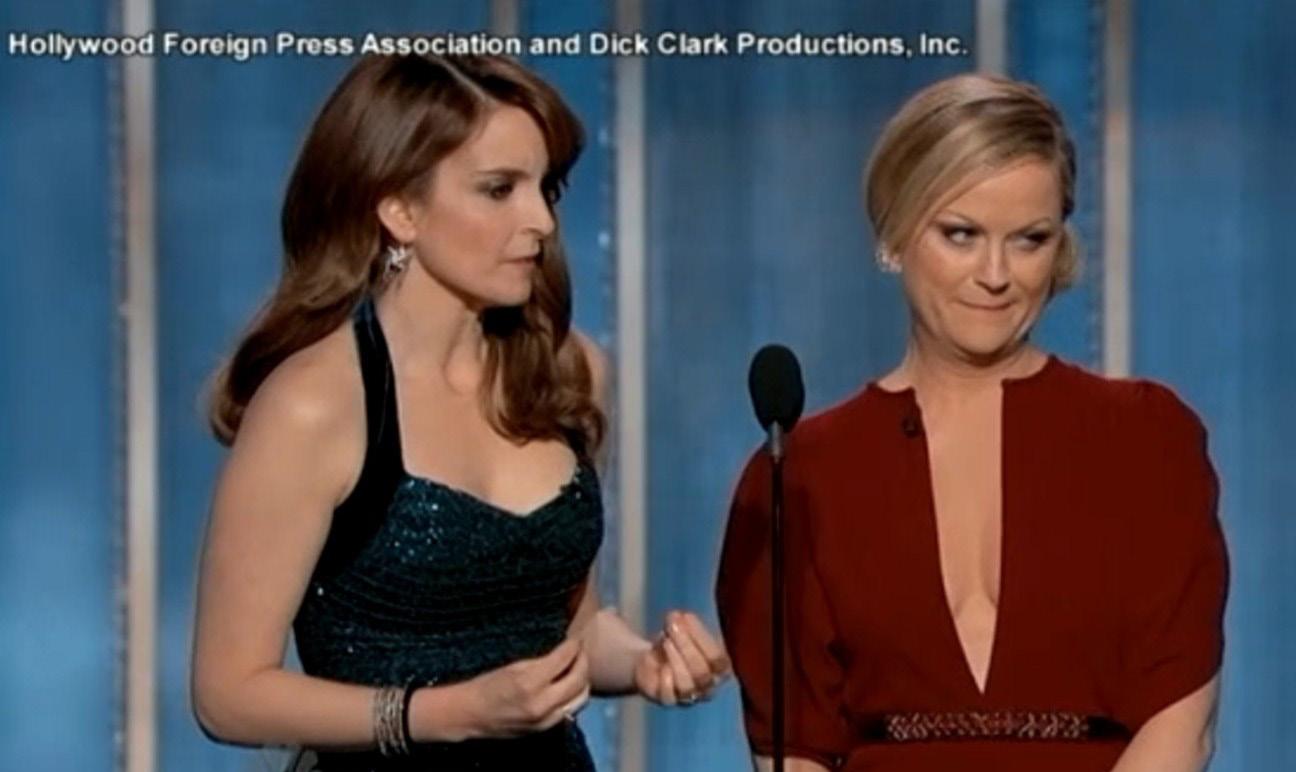 지난 2014년 골든 글로브 시상식(미국 헐리우드 외신기자협회에서 수여하는 영화상)에서의 티나 페이(Tina Fey. 왼쪽)와 에이미 포엘러(Amy Poehler. 오른쪽)씨. 1997년부터 2006년까지 NBC 스케치 코미디 시리즈 'Saturday Night Live'의 출연자이자 수석 작가였던 페이씨는 2008년 미국 대통령 선거에서 부통령 후보로 지명되었던 정치인 사라 폴린(Sarah Palin)씨를 풍자적으로 묘사, 그녀를 반대하는 이들에게 영향을 주었다는 연구도 있다. 사진 : 미국 ABC 방송 화면 캡쳐
