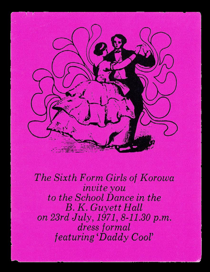 Thanks to Jan Weston (Orr, Class of 1971) who has donated to Archives her ticket from the Formal held in July 1971 that features the iconic band, Daddy Cool.