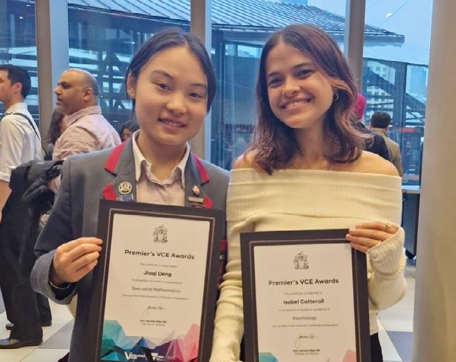 Jiaqi (Year 12) and Isabel (Class of 2023) were recognised at the Premier’s VCE Awards. Jiaqi received a Study Award in Specialist Mathematics, and Isabel was honoured for her achievement in Psychology. These awards celebrate their exceptional dedication and hard work during the 2023 VCE.