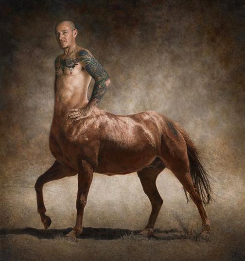 Jaq commented, ‘Ed is one of the bravest men I know. He cycled from England to Hong Kong with a violin strapped to his back and moved to a war zone to teach music to Afghan children. Charlie, Ed’s wife, calls him her centaur. Ed asked if I could paint him as a centaur, a magical being representing his transition. This portrait is especially meaningful to me because of my trans daughter of whom I’m extremely proud.’