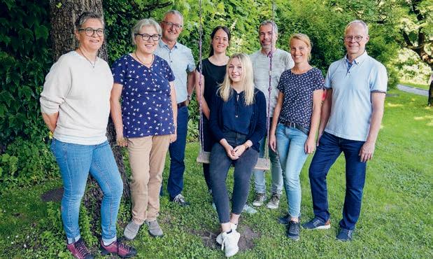 Von oben nach unten: Lorine Bissig, Bürglen; Ronja Gerig, Schattdorf; Mitarbeitende der Korporationsverwaltung beim Teamevent im Kulturkloster Altdorf.