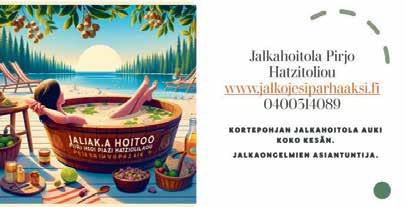 KORTEPOHJALAINEN • 1 1/2024 • TOUKOKUU Meillä myös Pakettiautomaatti Tavallista parempi ruokakauppa LÄNSIVÄYLÄ Kaivokatu 1, 40700 Jyväskylä, puh. 01042 33900 Palvelemme MA-PE 7-22, LA 8-22 ja SU 10-22. Löydät meidät myös Facebookista ja Instagramista Vihdoinkin alkaa GRILLIKAUSI JYVÄSKYLÄ Saarijärventie 81, 40270 Palokka Puh. 020 743 6740 Ma-Pe 8-17, La 9-15 RENKAAT ASENNUKSET HOTELLI Hinnat ovat verollisia hintoja ALV 24 % sisältäen 4:lle renkaalle vannetyö+tasapainotus+allevaihto+kierrätysmaksut. kumiseta.fi verkkokauppa palvelee 24/7 VERKKOKAUPPA VANTEET 499€ 4 kpl asennettuna 205/55R16 PremiumContact 7 LAATUA! PARASTA KESTÄVÄ! HYVÄTARJOUS 370€ 4 kpl asennettuna 205/55R16 Protech NewGen 350€ 4 kpl asennettuna 620€ 4 kpl asennettuna 440€ 4 kpl asennettuna 720€ 4 kpl asennettuna 499€ 4 kpl asennettuna 690€ 4 kpl asennettuna 499€ 4 kpl asennettuna 699€ 4 kpl asennettuna 520€ 4 kpl asennettuna 670€ 4 kpl asennettuna 420€ 4 kpl asennettuna 520€ 4 kpl asennettuna 570€ 4 kpl asennettuna 799€ 4 kpl asennettuna 550€ 4 kpl asennettuna 750€ 4 kpl asennettuna 195/65R15 Protech NewGen 205/60R16 UltraContact 205/60R16 Protech NewGen 225/55R17 PremiumContact7 225/50R17 Protech NewGen 225/50R17 PremiumContact7 215/55R17 Protech NewGen 215/55R17 UltraContact 225/55R17 Protech NewGen 225/65R17 UltraContact 225/45R17 Protech NewGen 225/45R17 PremiumContact7 235/45R18 Protech NewGen 235/45R18 PremiumContact7 245/45R18 Protech NewGen 245/45R18 PremiumContact7 Viking on osa Continental konsernia Valmistettu EU:ssa
