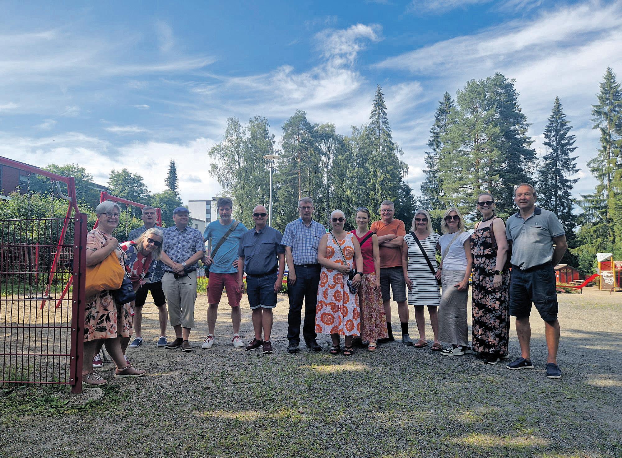 Kaikkien saavuttua paikalle aloitimme tapaamisen kävelykierroksella ja pysähdyimme vanhojen kotioviemme kohdalla ja muistelimme miltä kulmilla näytti noin 50 vuotta sitten. Leikkitelineet ja pensaat olivat uusia ja monien muistamia vanhoja isoja puitakin oli kaadet-